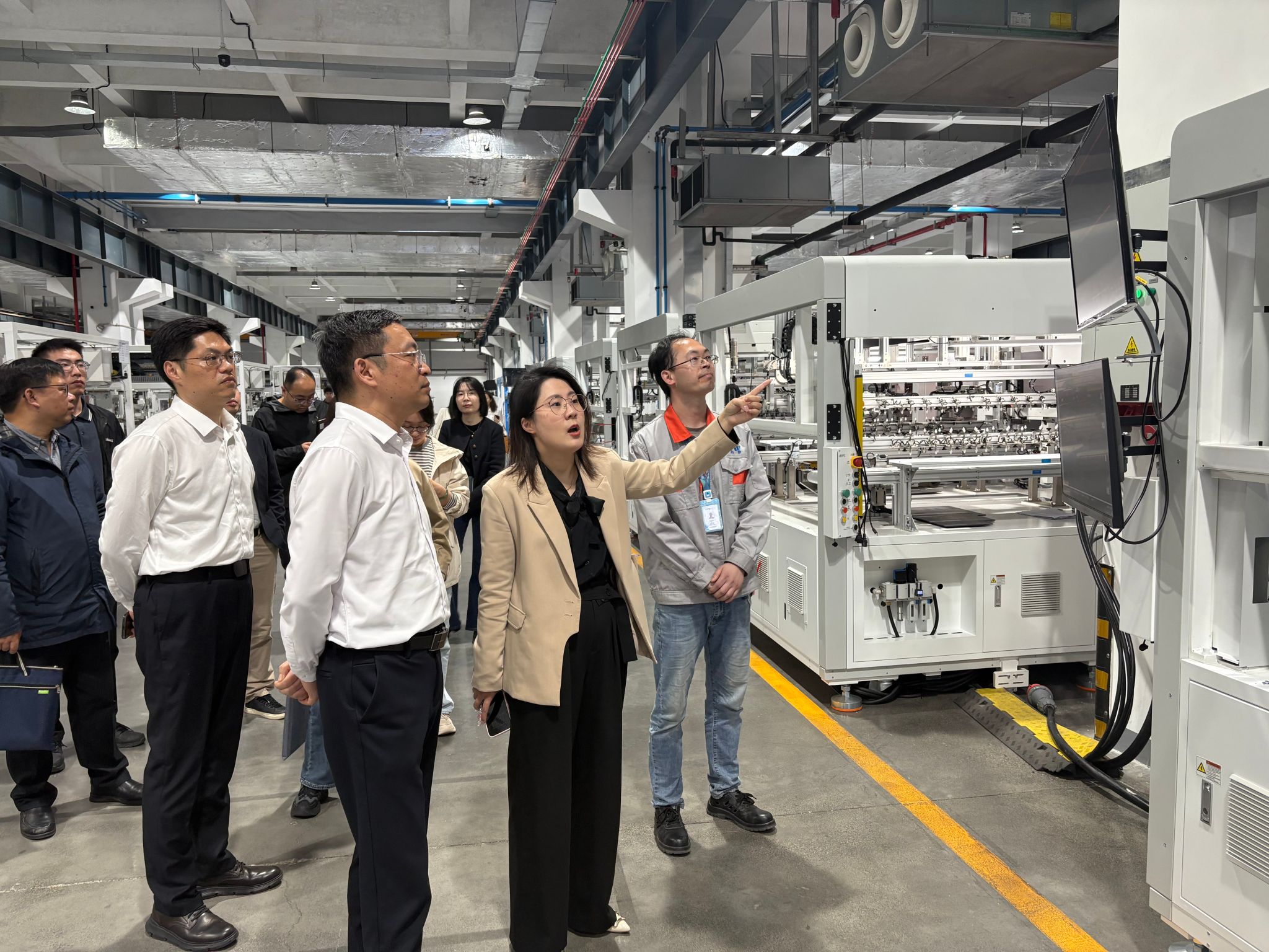 储开峰一行先后走访了无锡美丽健康产业园江南美湾、无锡市“AI+制造”产业赋能中心、犀数工场和无锡奥特维科技股份有限公司,深入了解美丽健康产业生态、人工智能赋能制造的应用场景以及高端装备的研发、生产和人才需求。