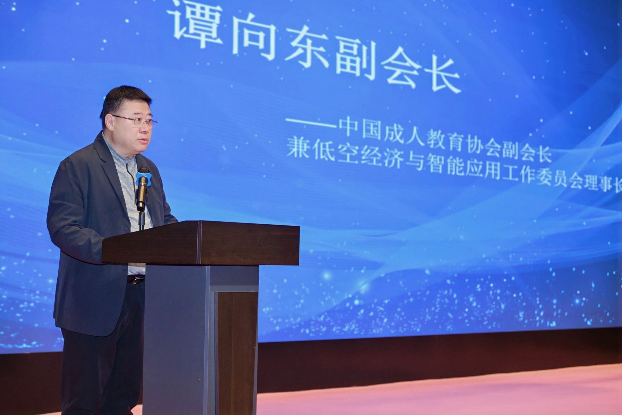 高文兵发表主旨讲话,代表协会向所有关心、支持、参与项目的各级政府部门、院校、企业及协办单位表示衷心感谢,向首批入选的项目实践单位致以诚挚祝贺。他指出,当前世界新一轮科技革命和产业变革深入推进,低空经济作为国家战略性新兴产业,是构筑新质生产力、构建现代化产业体系的关键赛道,更是落实“十五五”规划、服务中国式现代化建设的重要抓手。中国成人教育协会立项实施“赋能低空经济产业高质量发展项目”,是顺应产业变革大势、履行行业组织职责的战略举措。他希望各实践单位立足自身定位、深化协同合作、坚持创新驱动、强化责任落实,共同探索低空经济产教融合新路径、新模式,打造可复制、可推广的典型案例,为培育壮大新质生产力、加快发展我国低空经济战略性新兴产业作出新的更大贡献。