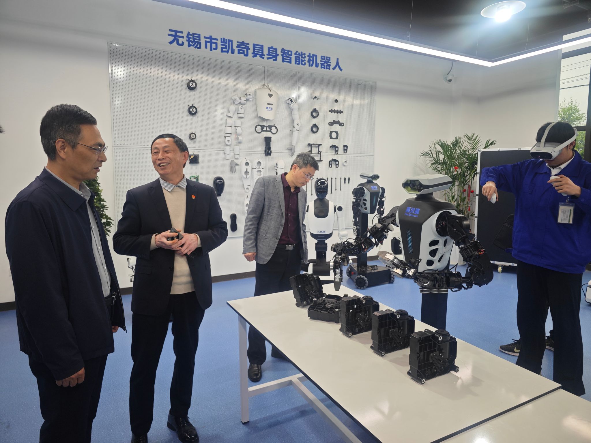 考察期间,周桂瑾一行还前往凯龙高科旗下无锡凯奇具身智能机器人有限公司,实地参观了惠灵嘉系列机器人产品,近距离观摩人形机器人、灵巧手等各类具身智能机器人,详细了解其在工业巡检、应急救援、仓储物流、环保检测等领域的落地应用场景,深入探讨了机器人产业发展趋势及人才需求方向,为后续校企精准合作奠定了坚实基础。