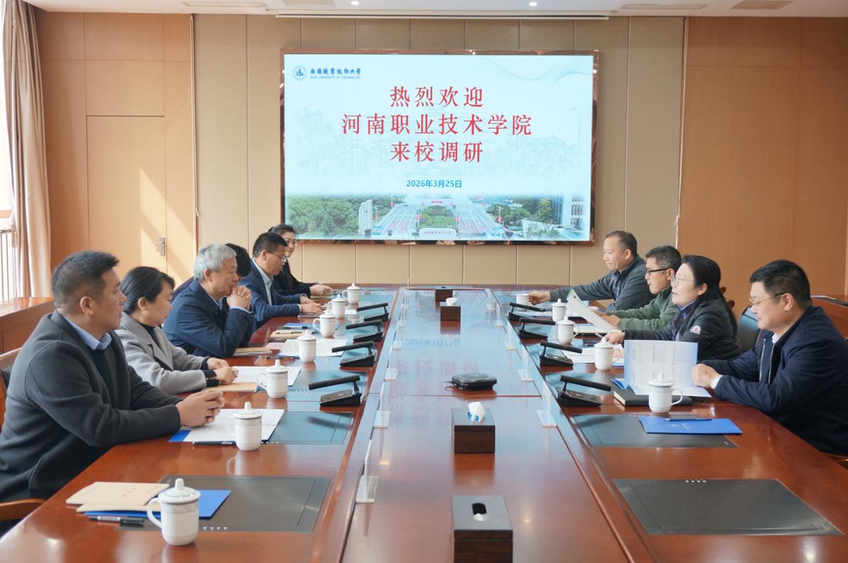 3月25日上午,河南职业技术学院党委委员、副校长李玉峰一行来校调研。我校副校长吴慧媛出席接待,发展规划处、财务处、科技产业处、继续教育与培训部等部门负责同志参加交流座谈会。