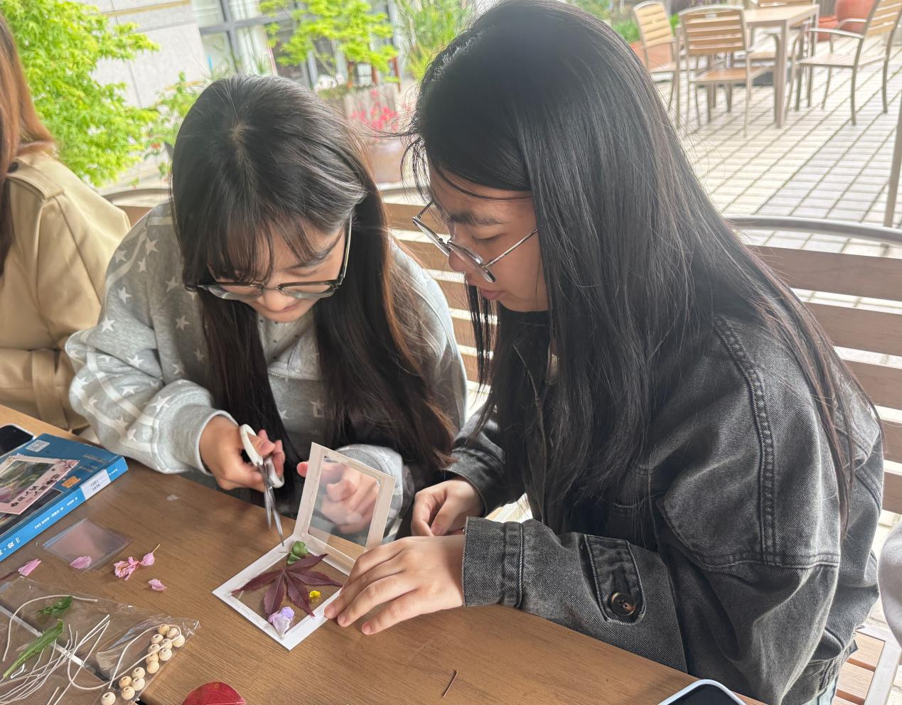 春日读书会还特别设置了“干花书签DIY”趣味体验,同学们围坐桌前,以花叶拼贴春日意象,在动手创作中沉浸式感受美好,将春日风光与缕缕书香一并珍藏。