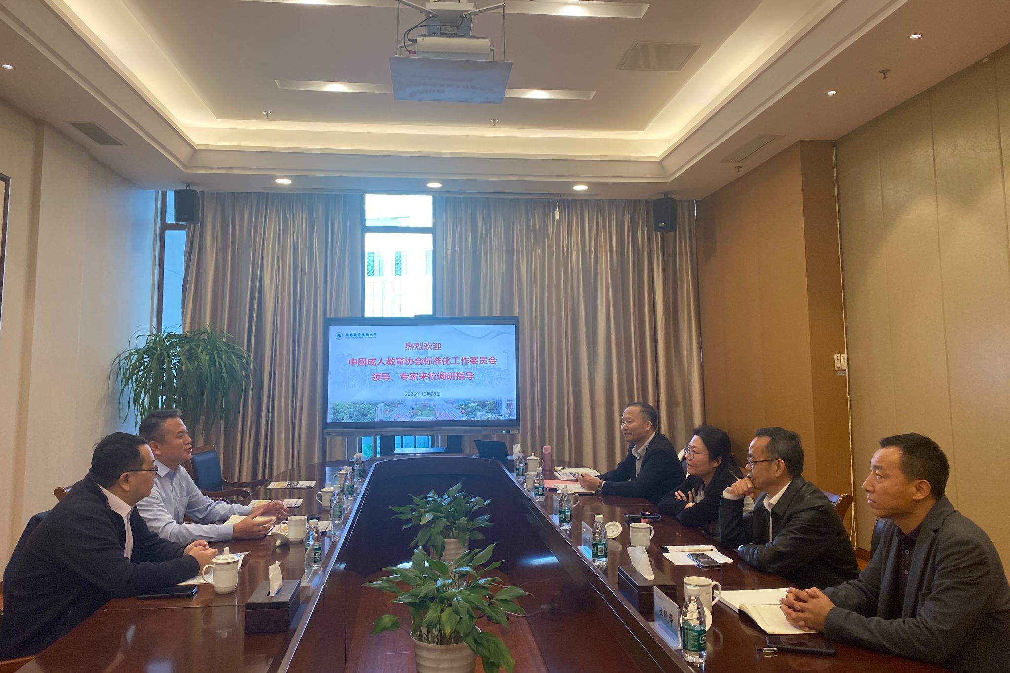 10月28日下午,中国成人教育协会标准化工作委员会副主任、南方教育中心执行校长吕洋一行4人来我校调研交流。副校长吴慧媛及继续教育与培训部相关负责人参加座谈交流。