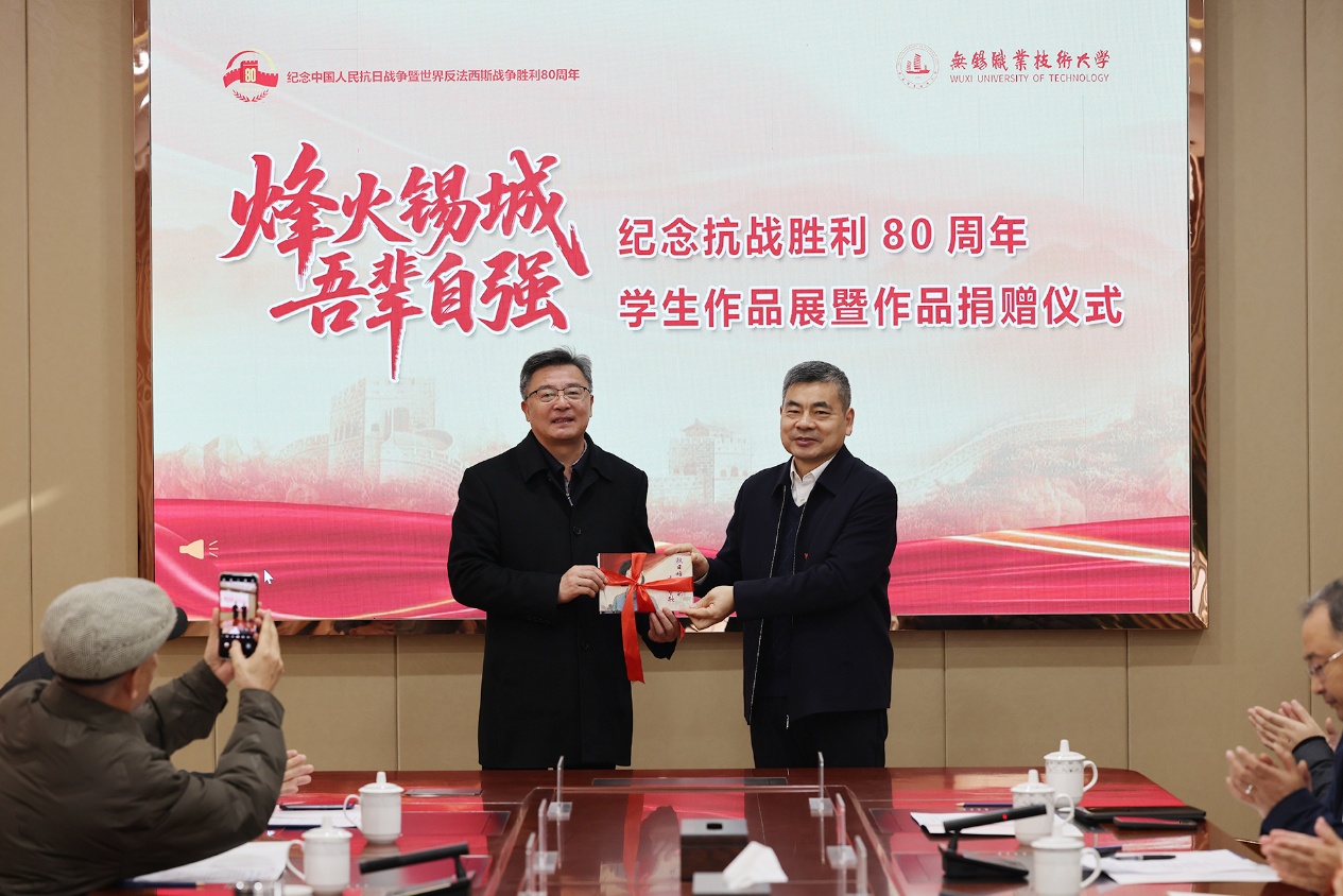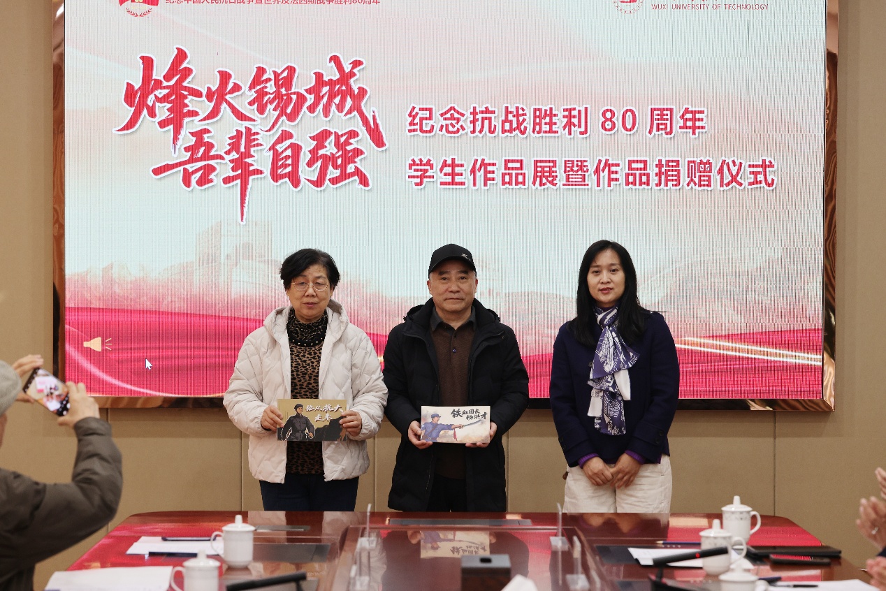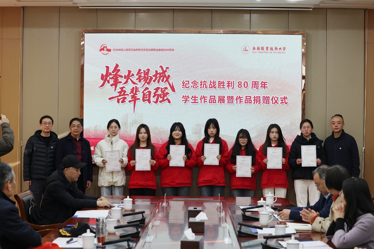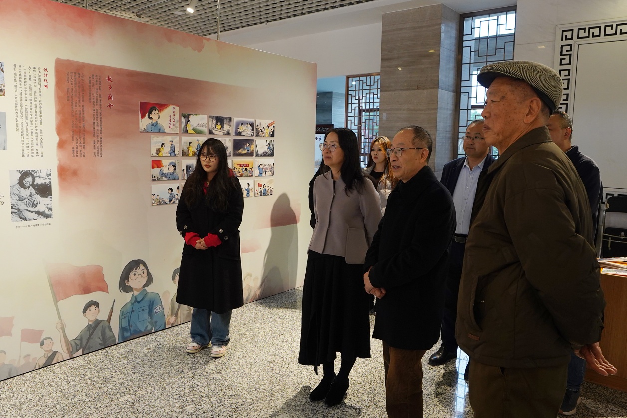 为纪念中国人民抗日战争暨世界反法西斯战争胜利80周年,弘扬伟大抗战精神,12月12日,设计艺术学院红色主题学生作品展在厚德楼一楼举办。中国新四军和华中抗日根据地研究会学术委员会主任常浩如、江苏省新四军和华中抗日根据地研究会副会长王伟、无锡市新四军历史研究会会长符惠明、研究会秘书长徐锡清,校党委副书记杨雪琴、校关工委常务副主任朱爱胜、马克思主义学院党总支书记赵后起、设计艺术学院院长杨敏、党总支副书记罗启宝及师生代表参观活动。