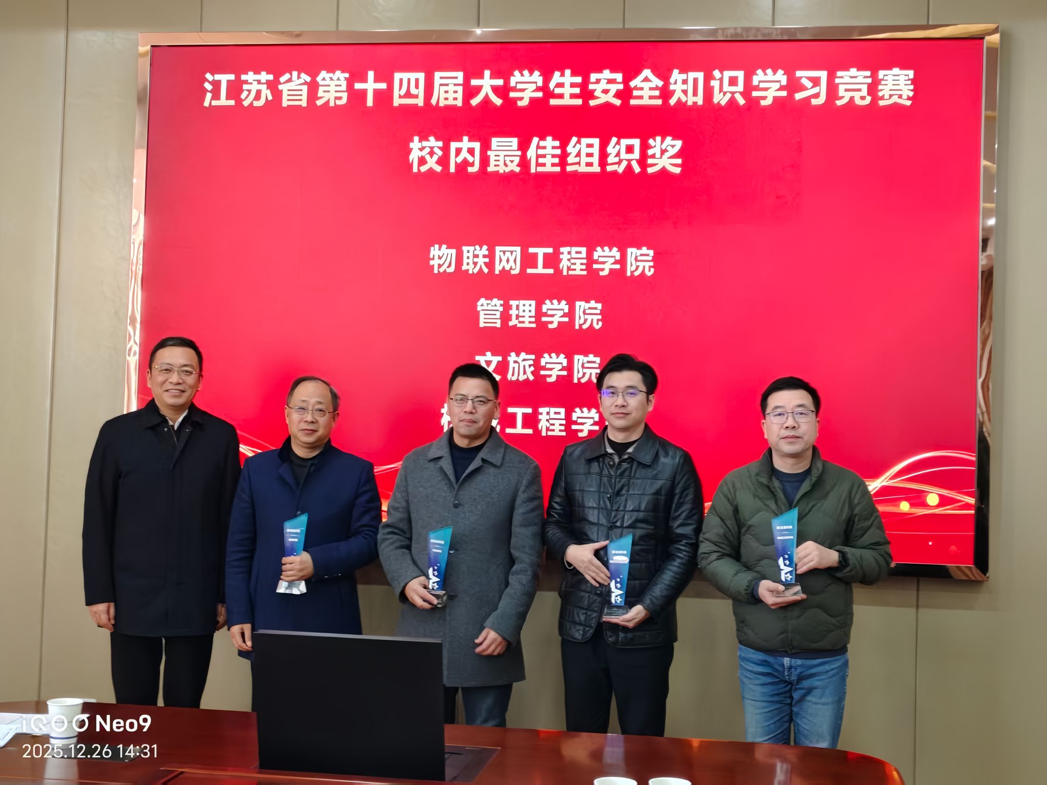 会上,雪浪派出所所长盛建平首先通报了学校全年警情情况,并对校园安全稳定工作成效表示肯定。随后,保卫处处长于会权传达了上级关于安全稳定工作的文件及会议精神,并结合典型案例,对加强校园安全防范提出了具体建议。与会人员围绕当前校园安全风险研判与安全管理模式优化,进行了深入交流。会议还通报了近期学生管理教育及就业工作情况,颁发了江苏省第十四届大学生安全知识学习竞赛校内最佳组织奖。物联网工程学院、管理学院、文旅学院、机械工程学院荣获该奖项。