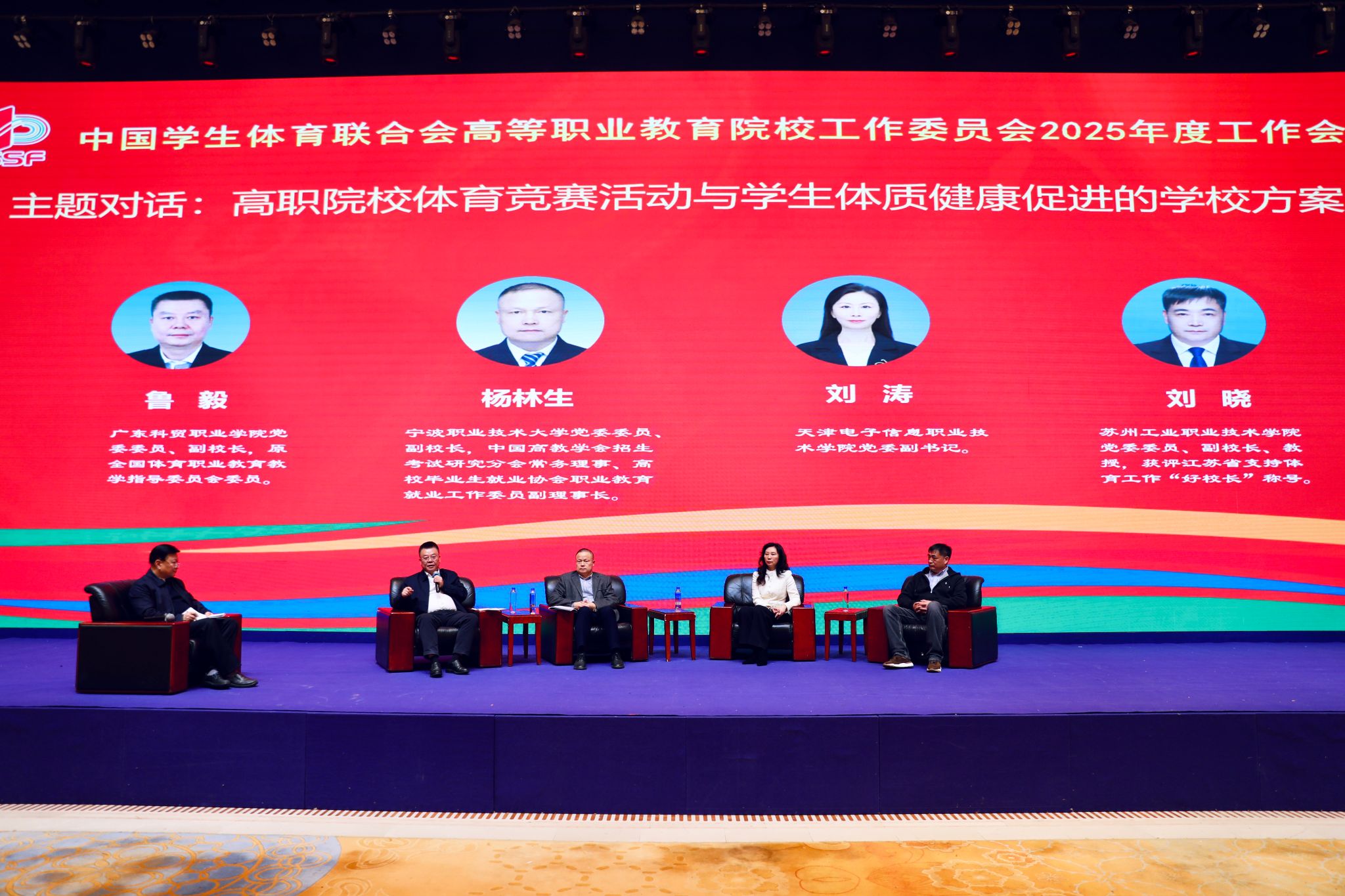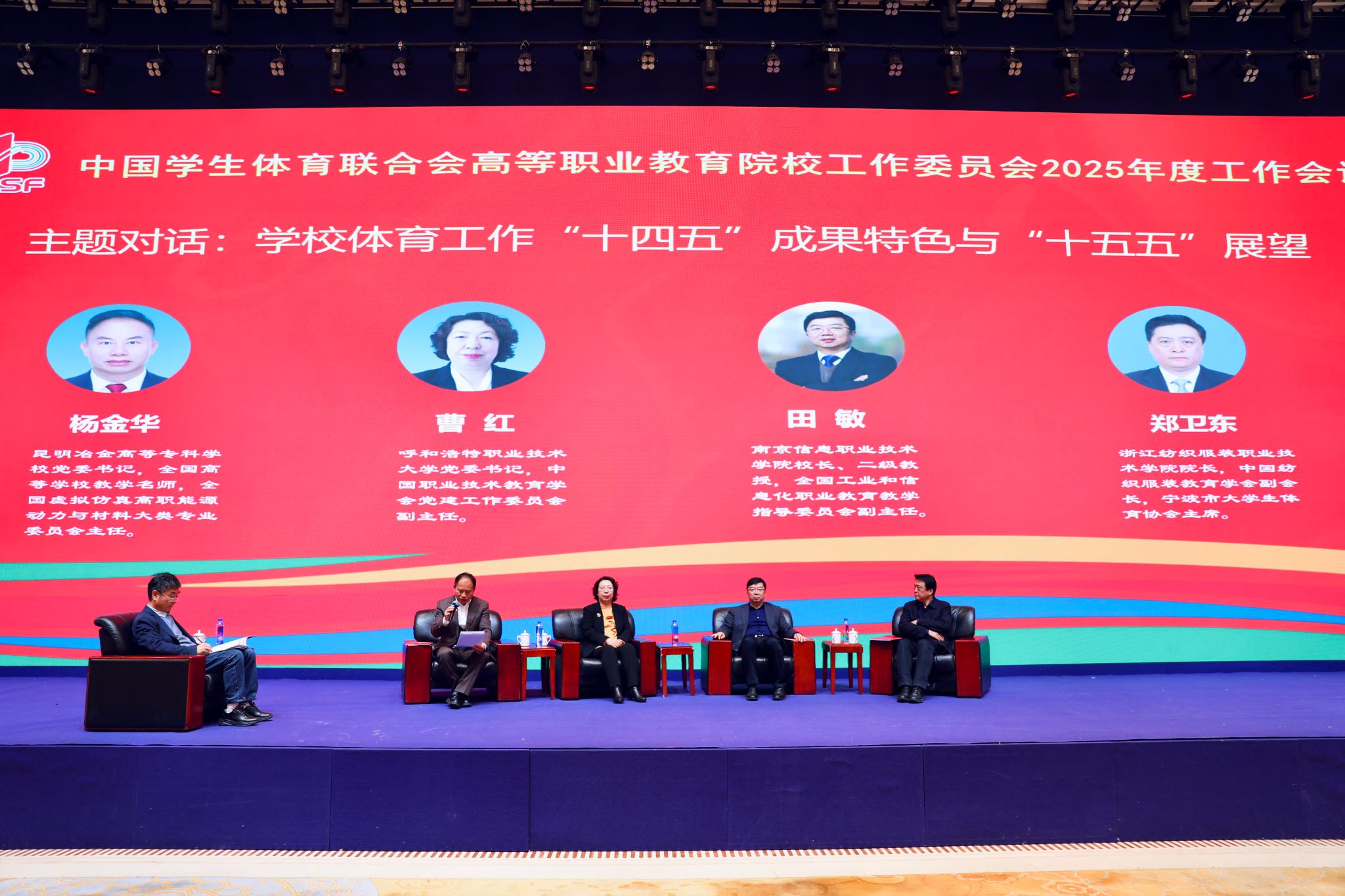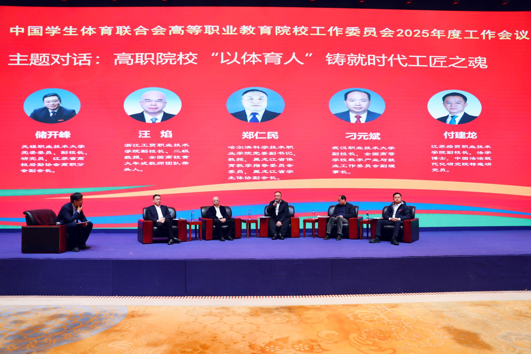 会议分别围绕“学校体育工作‘十四五’成果特色与‘十五五’展望”“高职院校‘以体育人’铸就时代工匠之魂”“高职院校体育竞赛活动与学生体质健康促进的学校方案”,进行了三场高质量的校领导与参会代表“面对面”主题对话活动。储开峰结合我校办学实际,介绍学校通过体育课程、竞赛活动、校园文化等载体,将坚韧不拔、精益求精、团队协作的体育精神融入工匠精神培育之中的生动实践。