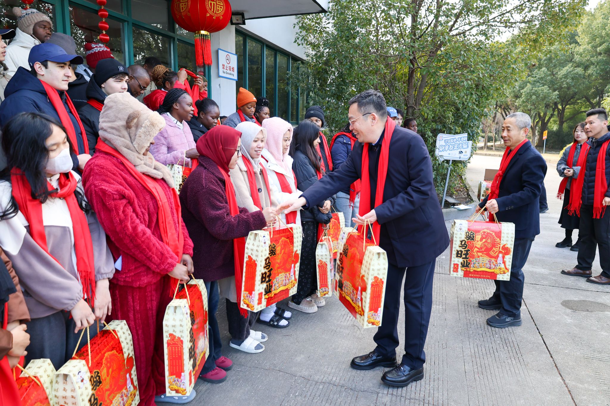 2月17日,农历丙午马年春节当天,副校长储开峰带领党校办、保卫处、学生处、后勤处、国交处等相关部门负责人,走访慰问了仍坚守岗位的教职员工和留校学生。