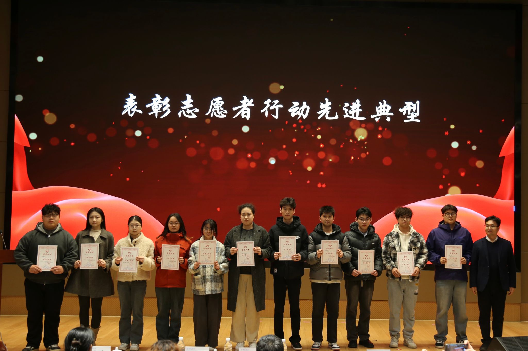 活动现场表彰了2025年度学校优秀志愿者、优秀志愿服务项目和优秀志愿组织;控制工程学院耿士奇同学作为优秀志愿者代表发言,开源创新创业学院云商创新班24 刘珈宁同学作为优秀志愿服务项目代表分享。王缘作为共建单位代表发言,回顾了近年来与学校团委在志愿服务基地共建方面取得的成果。
