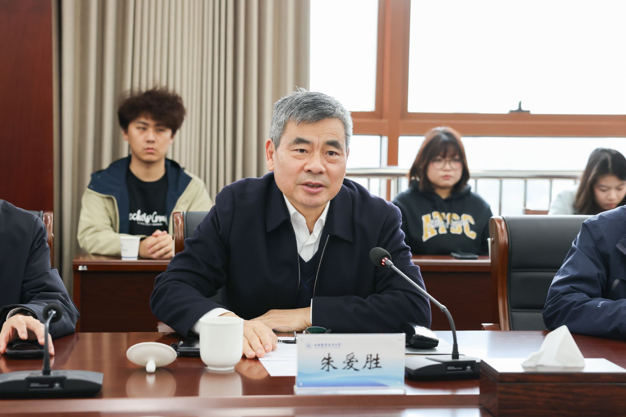 会议还对2025年度关工委工作先进集体和先进个人进行了表彰。物联网工程学院党总支书记、关工委主任谢欢和机械工程学院关工委秘书长靳丹丹分别代表学校关心下一代工作先进集体和先进个人作了交流发言。