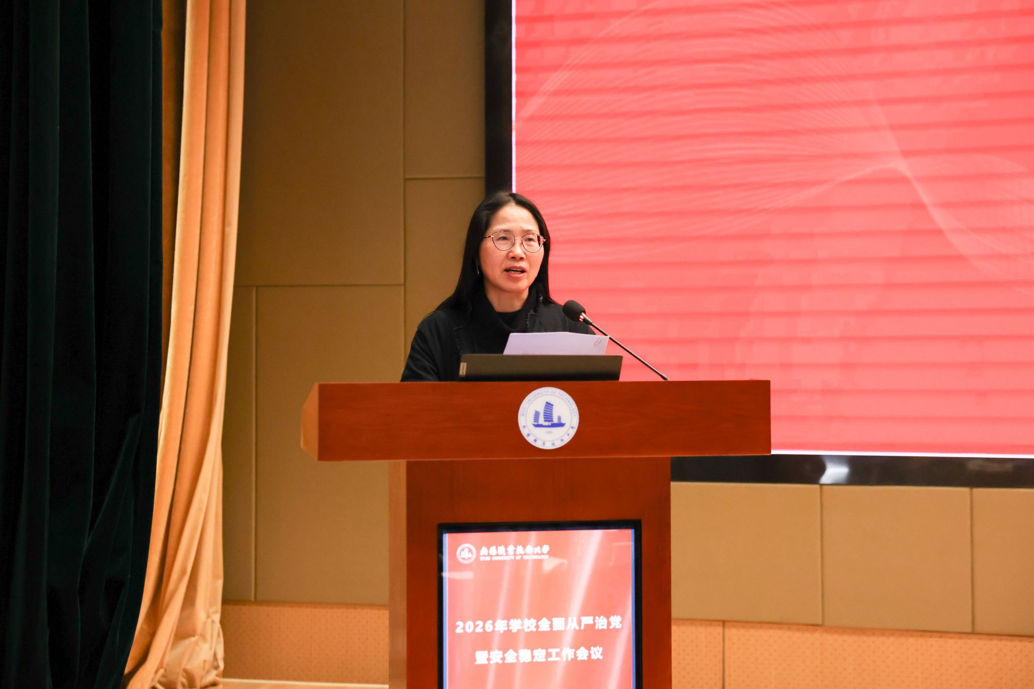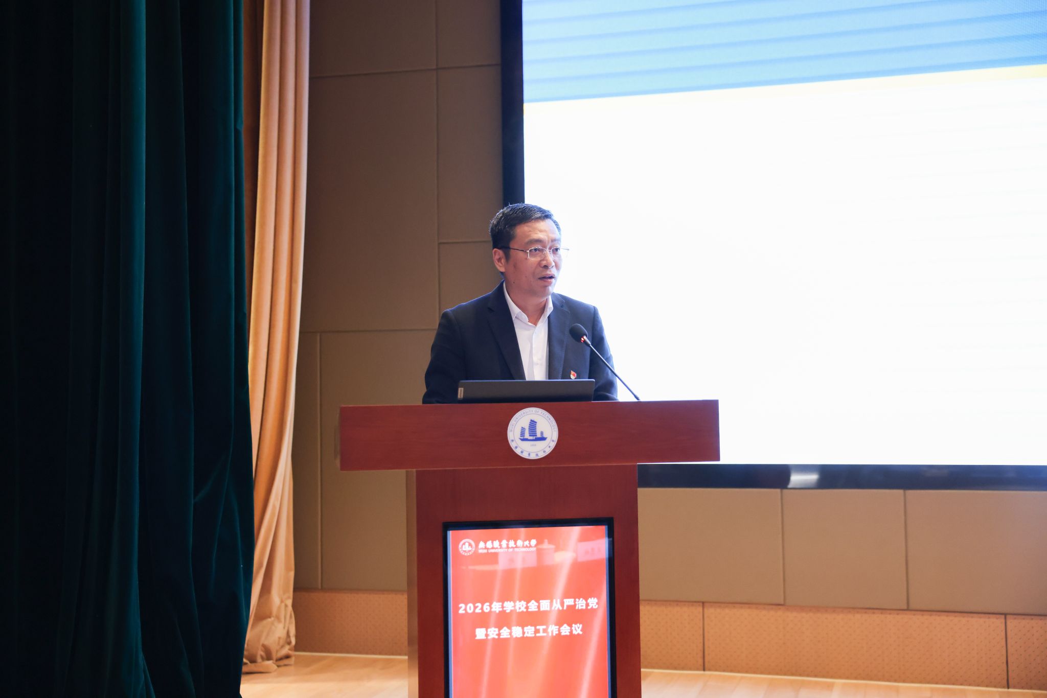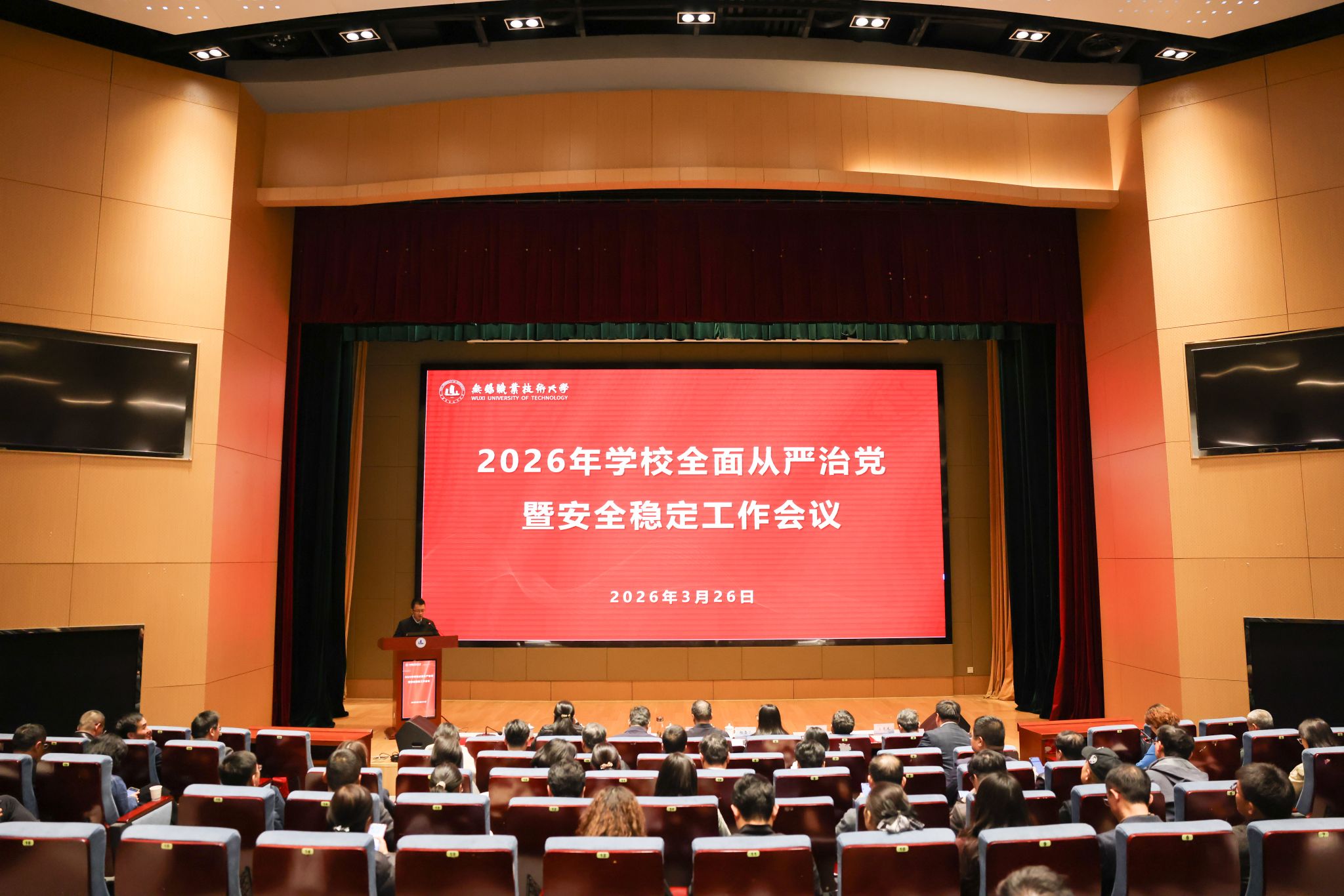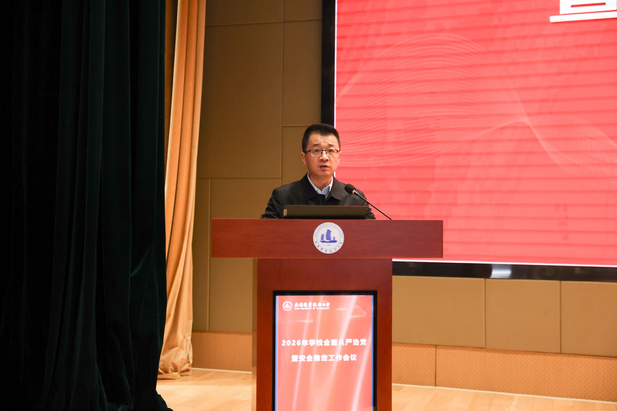 为深入学习贯彻党的二十届四中全会精神,全面落实党中央和省委关于全面从严治党的新部署、新要求,系统总结校园安全稳定工作成效,扎实推进巡视整改各项任务,3月26日下午,学校在厚德楼一楼报告厅召开2026年全面从严治党暨安全稳定工作会议。全体校领导、中层干部、校纪委委员、各二级党组织纪检委员、校安全联络员参加会议。会议由校纪委书记李衔主持。