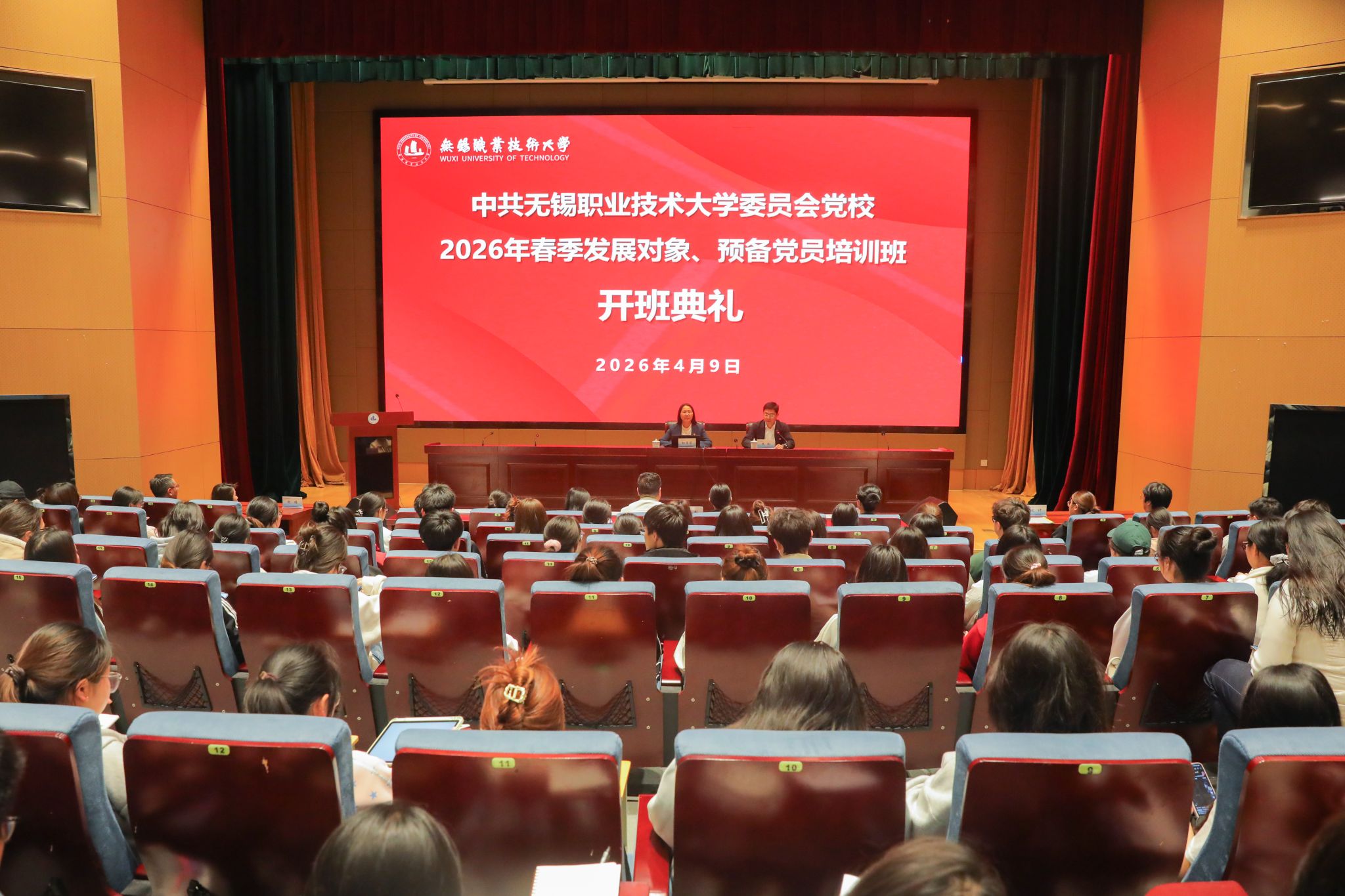 4月9日下午,校党委党校2026年春季培训班开班典礼在厚德楼一楼报告厅举行。校党委副书记杨雪琴出席会议并讲话,校党委委员、组织部部长、党校副校长朱翔主持会议,分党校教师代表、本期培训班全体学员共200余人参加本次活动。
