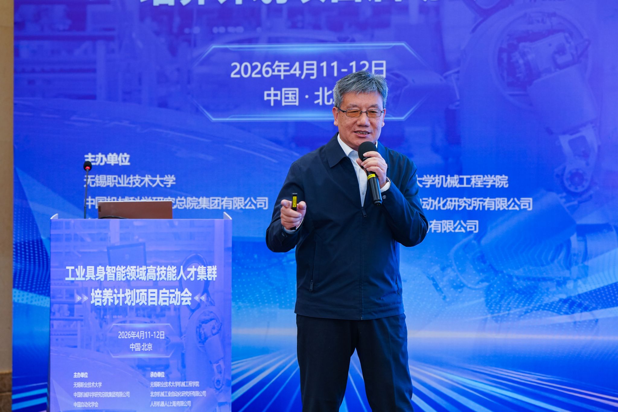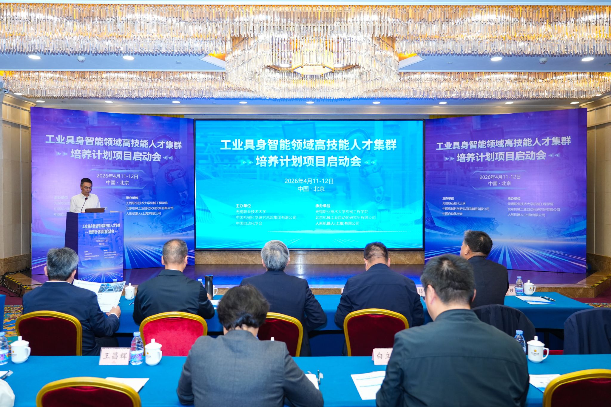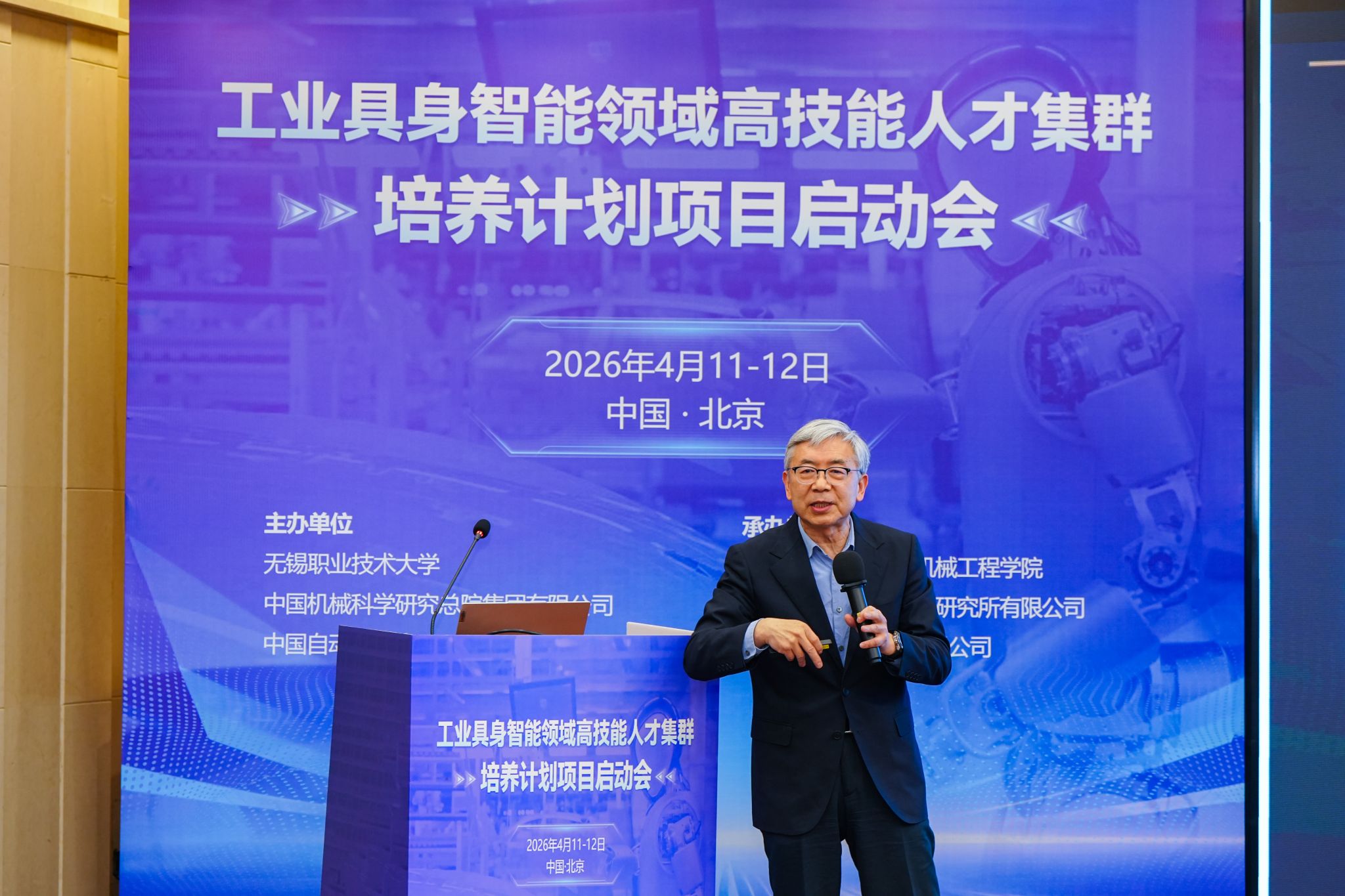 4月11日至12日,我校联合中国机械科学研究总院集团有限公司、中国自动化学会共同主办的工业具身智能领域高技能人才集群培养项目启动会在北京西郊宾馆举行,来自全国25所高职院校、行业领军企业、科研院所及主管部门的70余名代表齐聚一堂,共商产教融合新路径,描绘人才培养新蓝图。