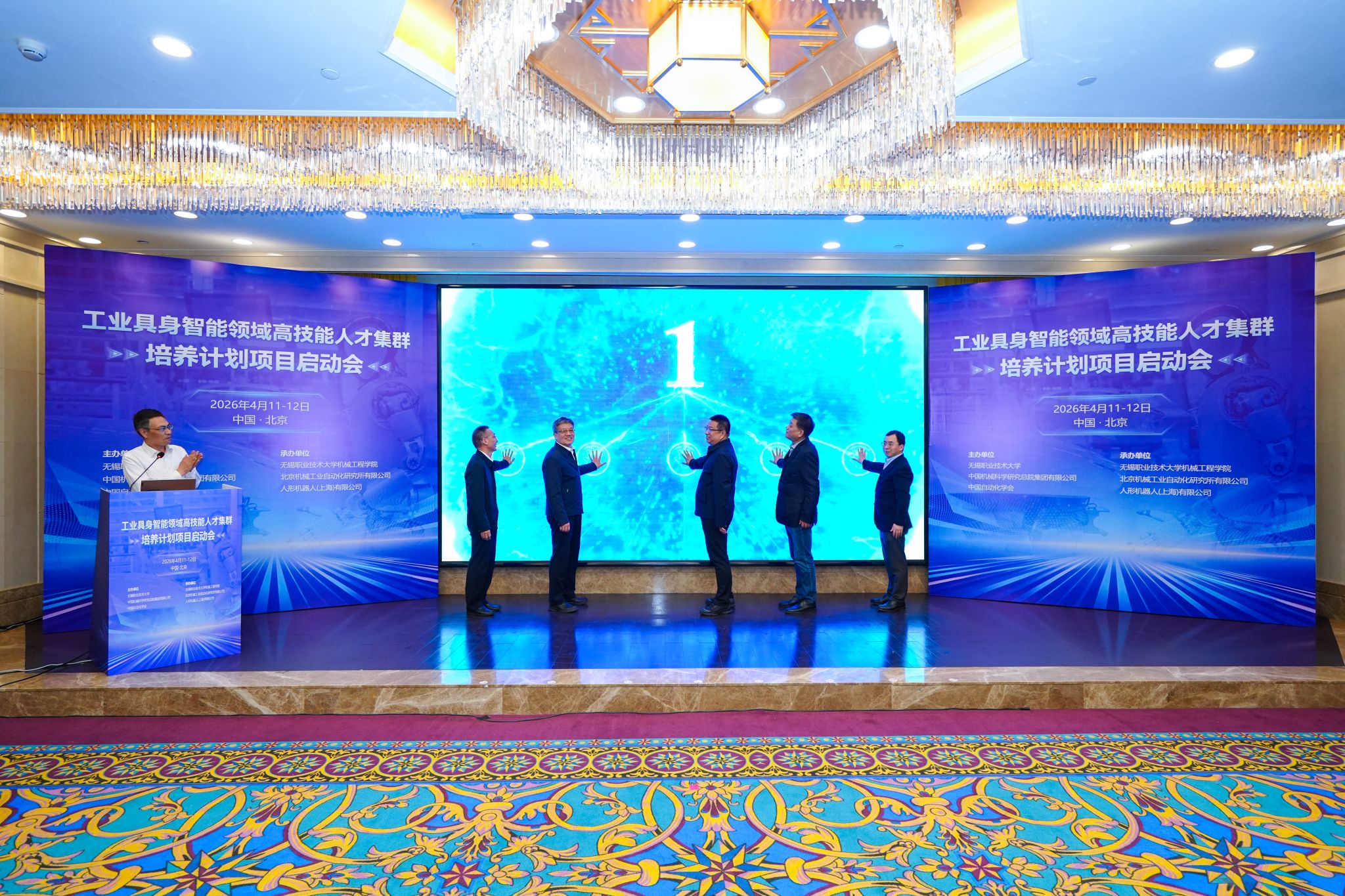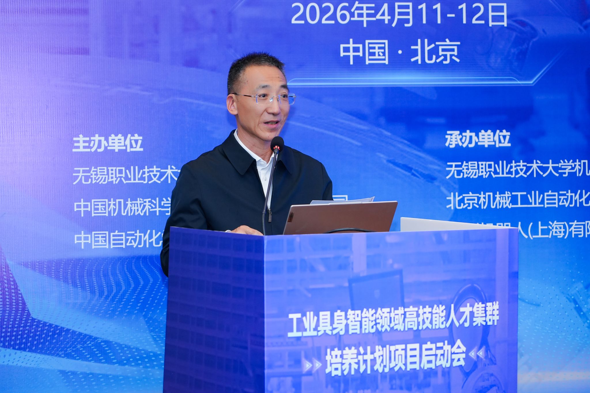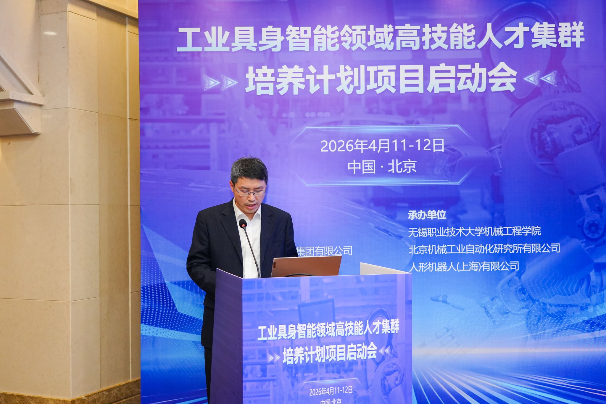 4月11日至12日,我校联合中国机械科学研究总院集团有限公司、中国自动化学会共同主办的工业具身智能领域高技能人才集群培养项目启动会在北京西郊宾馆举行,来自全国25所高职院校、行业领军企业、科研院所及主管部门的70余名代表齐聚一堂,共商产教融合新路径,描绘人才培养新蓝图。