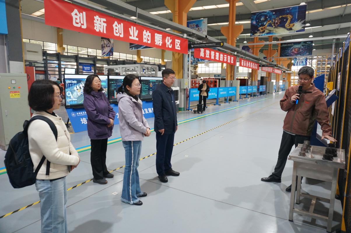 会前,杨新民一行在吴慧媛陪同下走访参观了智能制造工程中心、机械制造工程训练中心等场所,了解我校实训设备配置与教学实训开展情况。