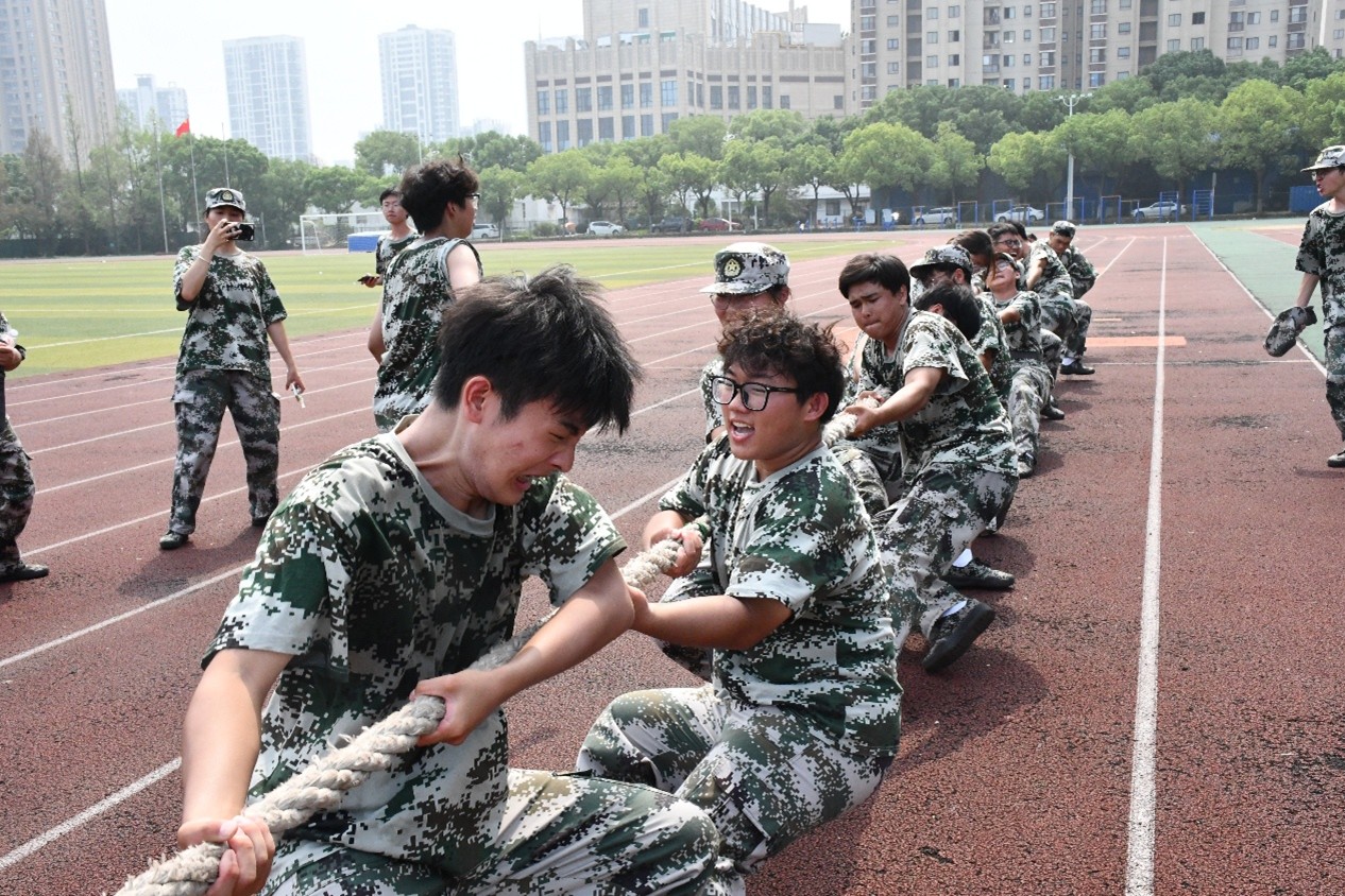 徐枬莘与同学们亲切交流,勉励大家将军训中不怕苦、敢拼搏的精神,融入班集体建设,走好求学发展之路。“预备,3、2、1,开始!”随着指令,比赛拉开帷幕。麻绳两端,各班队员紧握绳索、扎稳脚步,全力角逐。从小组赛到晋级赛,呐喊与加油声此起彼伏,成为集体凝心聚力的生动写照。