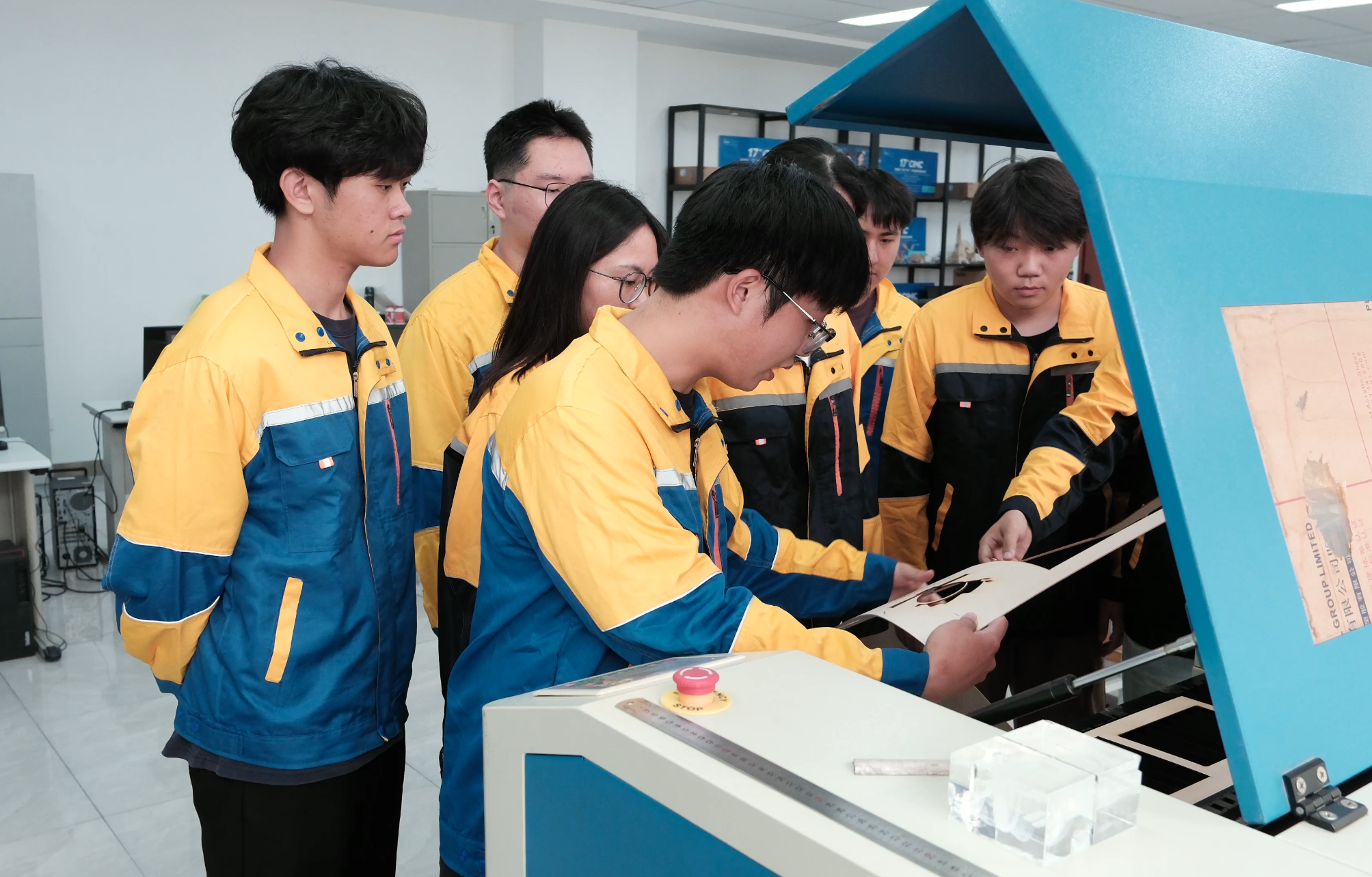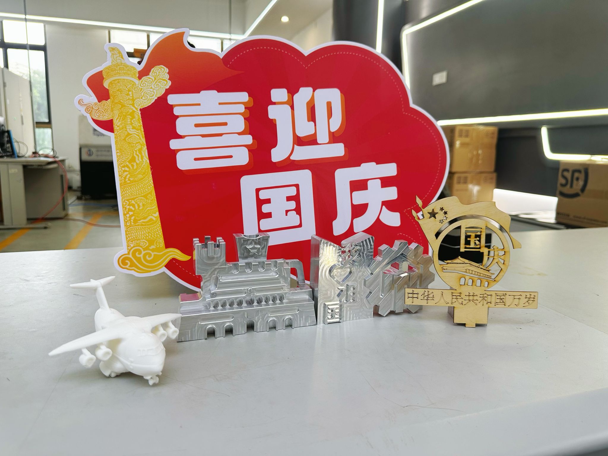 激光镌刻,铭记辉煌时刻。此外,师生们还巧妙运用激光雕刻木制切割技术,创作了一系列饱含“国庆”元素的工艺品。五星红旗、天安门、中华人民共和国万岁等元素被精准地雕刻在木板上,光影交错间,既展现了科技的精准之美,又传递出节日的欢庆与历史的厚重。
