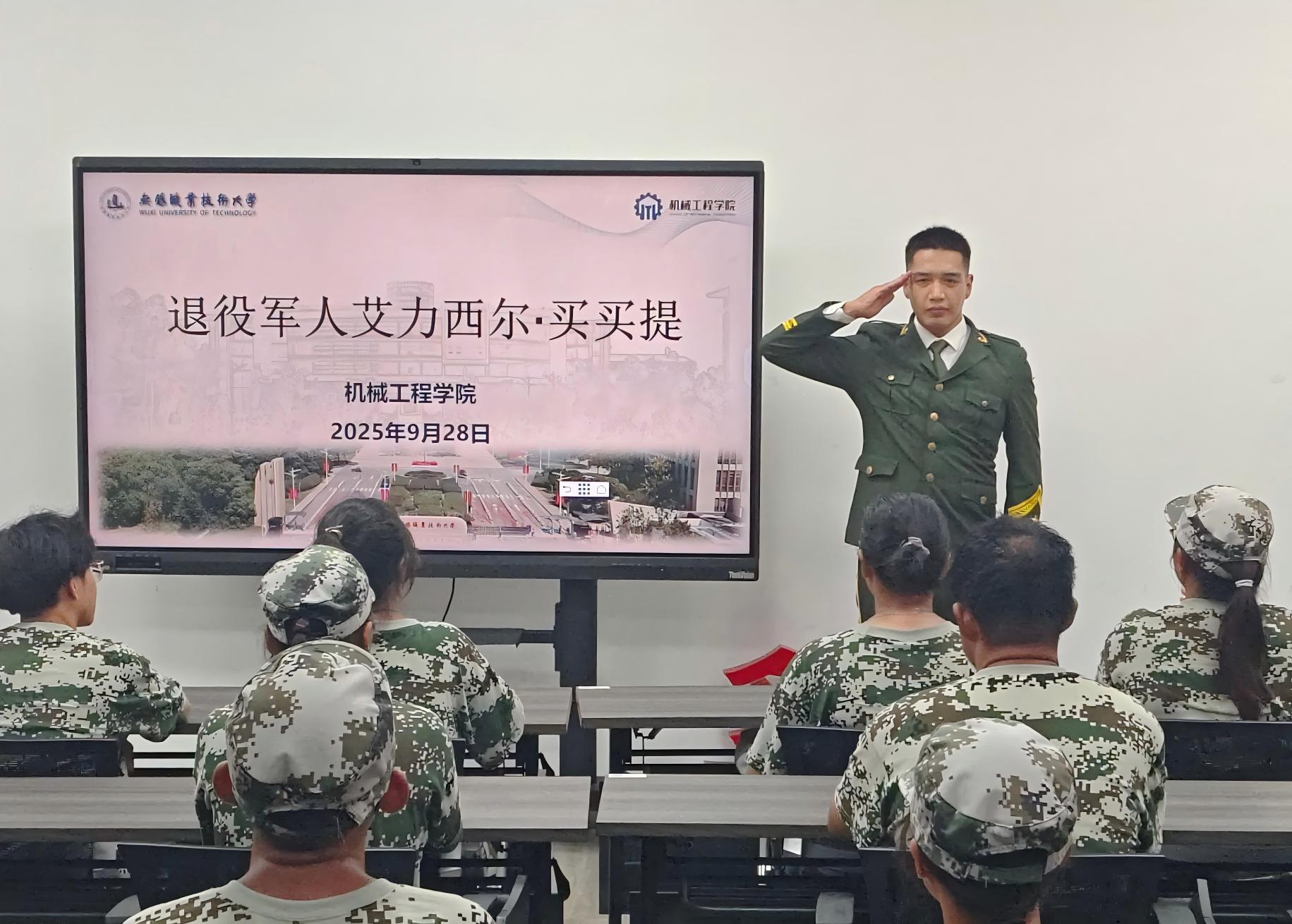 为庆祝新中国成立76周年,弘扬爱国精神,厚植家国情怀,9月28日,机械工程学院在党员活动室举办“退役士兵讲国防,青春致敬贺国庆”主题交流活动,刘振煜、糜晓晨、艾力西尔·买买提3名退役大学生向刚刚结束军训的50余名大一新生讲述了他们的军旅故事。