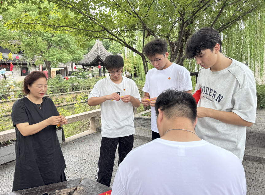 为了弘扬中华优秀传统文化,让师生们感受节日的独特魅力,学院还在荡口古镇广场上开展了扭扭棒花灯制作活动。学院关工委副主任王继红老师以中秋寄语为引,将阖家团圆的温情融入话语,细致解读中秋“祭月、赏月、思亲”的文化内涵,既传递了对同学们的节日祝福,也让大家在温情讲述中加深了对传统节日的认知。师生们化身“手作匠人”,带着对双节的期待,沉浸式投入到这场手工的创作中。指尖翻飞间,普通的扭扭棒逐渐变成花朵装饰着灯笼,当暖光灯串嵌入其中,灯光透过灯笼的缝隙洒出,映照着每个人专注又满足的笑容。