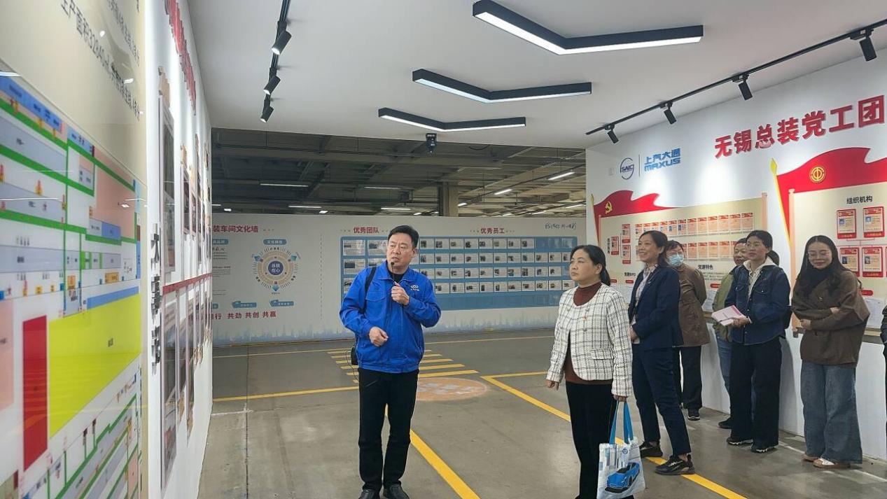 随后,双方党员深入企业展厅与总装车间,开启沉浸式调研之旅。通过负责人详细讲解,系统了解了上汽大通的发展历程、品牌理念、核心产品线及市场布局,对企业在新能源汽车、智能网联汽车领域的创新成果有了直观认知。在总装车间,实地观摩了智能化柔性生产线的运作过程,从零部件精准配送、机械臂协同作业,到整车装配、质量检测等关键环节,党员教师近距离感受了现代汽车制造业的智能化、自动化水平。先进的生产设备、严谨的质量管控体系、高效的生产管理模式,让教师们对汽车制造产业前沿技术和行业发展趋势有了更深刻的把握。