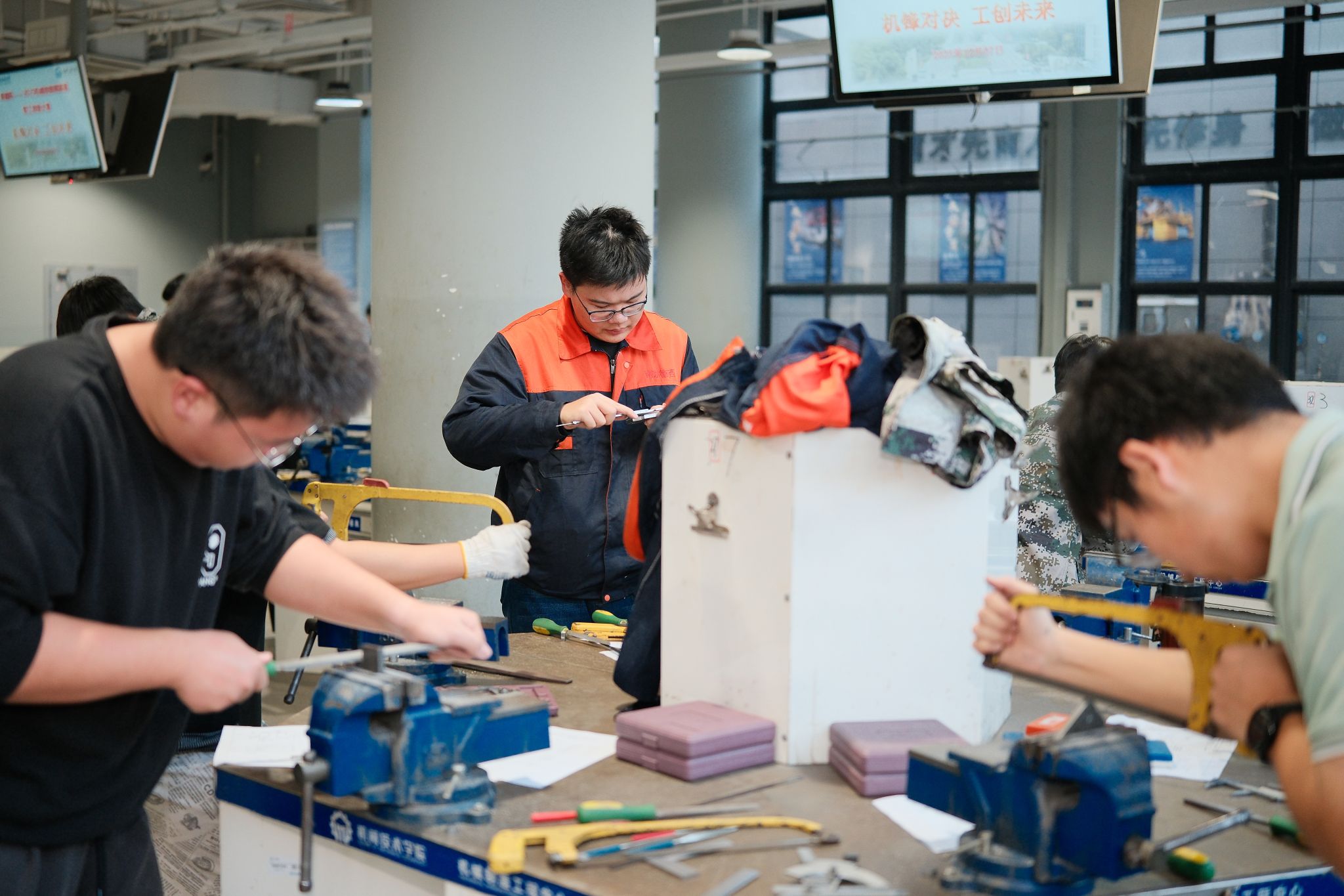 12月7日上午,钳工技能大赛在敏行楼负一楼钳工实训室火热开展。比赛分为“基石组”与“巅峰组”,兼顾不同生源学生的技能水平。在180分钟的比赛中,选手们熟练运用锉、锯、钻等工具,对照图纸精心加工,展现了出色的手眼协调能力与工艺执行精度。现场工具声、测量声交织,气氛紧张而有序,充分彰显了“工匠精神”的实践内涵。