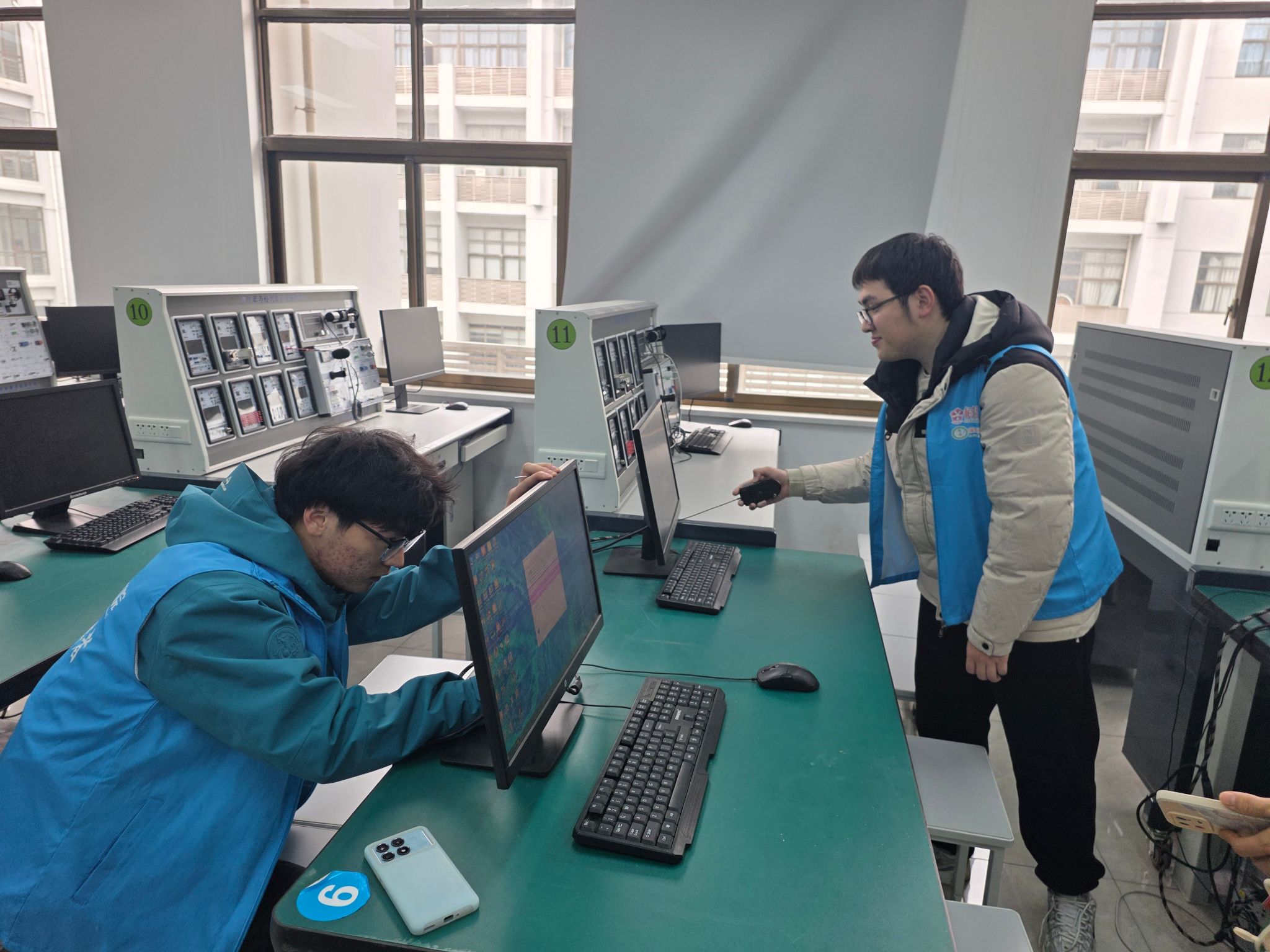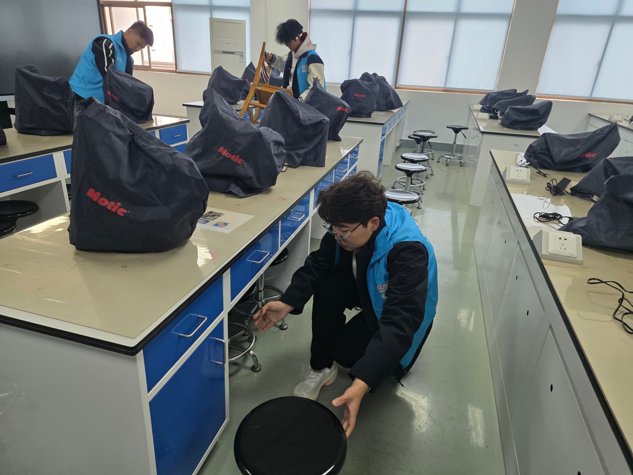 活动前期,学生志愿者服务队伍明确了排查范围、责任分工及操作规范,详细讲解了设施隐患识别、松动部件紧固、损坏点位登记等相关技巧。活动现场,志愿者们分小组深入学院机房、实验室、新生晚自习教室,逐一对桌椅、门窗、讲台、照明设备、实验用具、电脑等进行细致检查,重点查看桌椅螺丝是否松动、门窗开关是否顺畅、玻璃是否完好,对发现的松动部件当场进行紧固,对损坏的桌椅、电脑等点位详细登记在册,同时对实验器材的摆放规范情况进行检查,及时纠正不规范摆放行为,降低实验操作过程中的安全风险。
