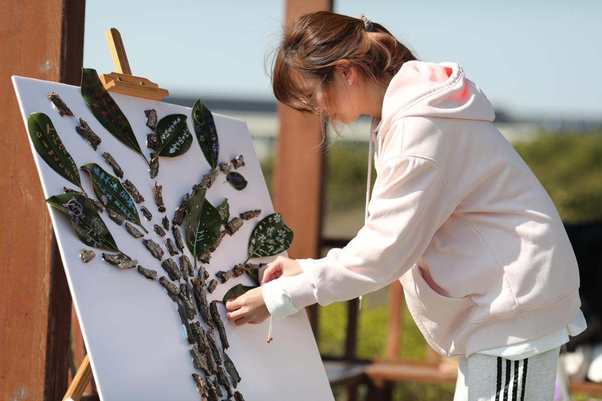 本次活动依托学生社区空间开展,学生以宿舍为单位组队参与绿植DIY种植,活动创新利用校园自然素材,设置树叶心愿墙环节,传递绿色环保理念。活动现场,各宿舍成员分工协作,有人挑选植株,有人填土扎根,有人设计铺面造型,在轻松愉快的氛围中互相配合、交流想法。活动特别设计“树叶心愿墙”。志愿者提前收集校园内掉落的落叶,经过简单清理后作为天然“便利贴”供学生使用。参与学生在落叶上写下对室友的祝福或对友情的期许,“感谢包容”“一起加油”“顶峰相见”等真挚话语跃然“叶”上。写有心愿的树叶被依次粘贴至主题展板上,汇聚成枝繁叶茂的“友谊之树”,寓意同窗情谊如绿植般生根发芽、茁壮成长。同学们专注投入栽种操作,在协作配合中体验“心流”状态,感受动手劳作带来的平静与愉悦。