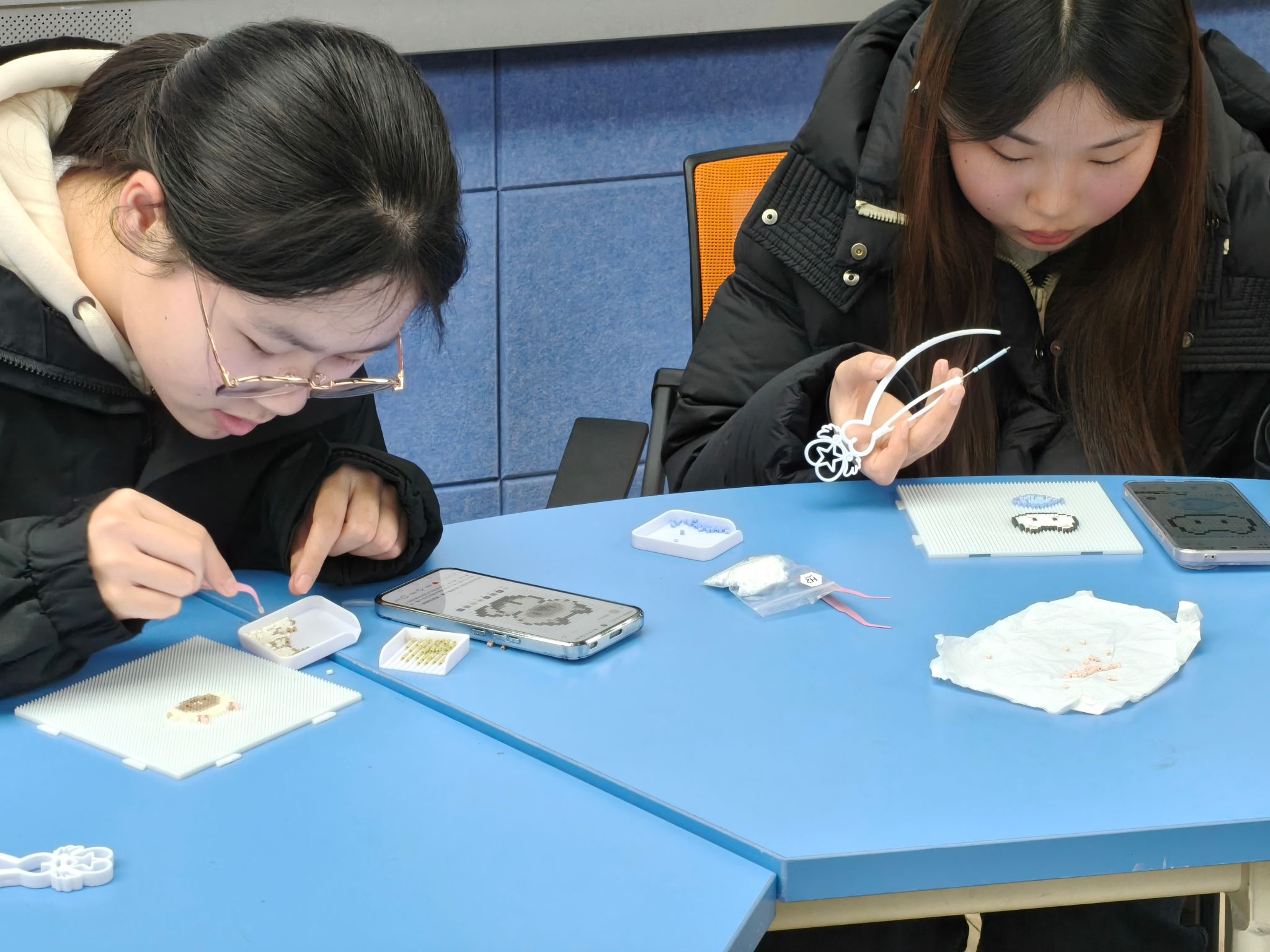 为深入推进“一站式”学生社区心理育人工作,积极探索贴近学生需求、富有专业特色的心理健康教育形式,3月17日下午,物联网工程学院在图C-105教室组织开展“拼出‘心’世界·邀你‘豆’风采”主题拼豆心理体验活动。本次活动以手工创作为载体,旨在帮助学生在沉浸式体验中释放压力、觉察情绪、增进交流,引导学生以积极心态面对学习生活。来自各年级的30余名师生共同参与,在缤纷的拼豆世界中,用指尖的温度拼凑出属于自己的心情碎片。