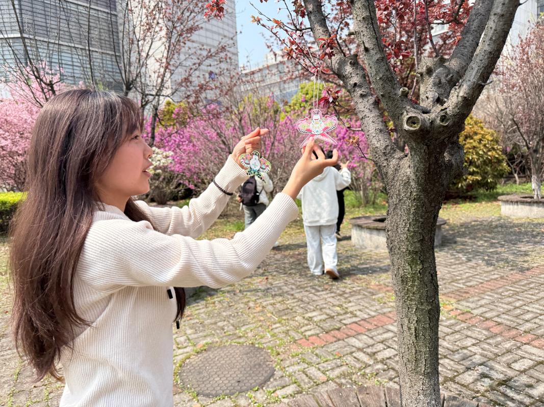 随后,四大特色环节依次展开,全方位滋养学生心灵。在“鸢书寄意”环节,同学们将心事、烦恼与期许落笔纸鸢之上,让纸鸢载着心事飞上枝头;“聚力前行”环节里,大家徒步前往长广溪湿地公园,通过“公鸡下蛋”“指压板释压”“焦虑粉碎机”等趣味团体游戏舒展身心、协作互动,在欢声笑语中释放压力、凝聚团队力量。“心声分享会”上,同学们敞开心扉倾诉困惑、交流感悟,在倾听与鼓励中彼此治愈;最后的“劳育砺行”环节,大家划去书签上的烦恼、悬挂心愿书签,整理活动现场,以动手劳动卸下心灵负担,完成一场充满仪式感的心灵减负。