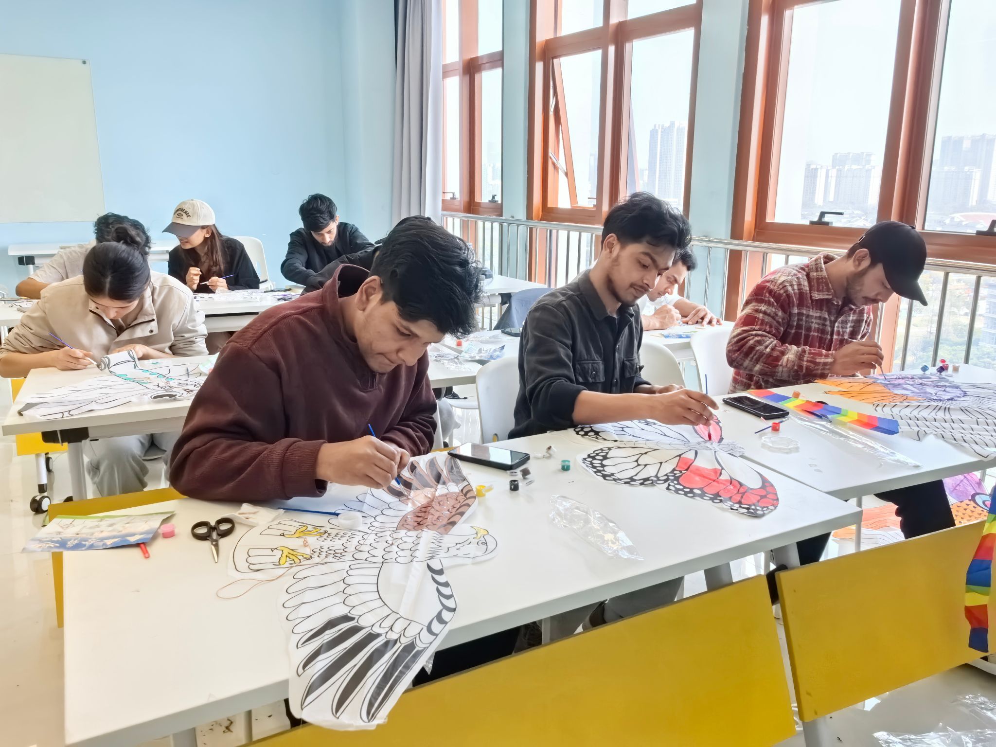 4月2日,国际教育学院在崇德楼1104教室举办“鸢飞清明 心向阳光”清明节风筝主题文化暨留学生心理团辅活动。来自多个国家的四十余名来华留学生齐聚一堂,在老师的带领下,共同学习中国风筝的历史与文化内涵,亲手体验风筝制作的传统技艺,在轻松温暖的氛围中感受清明时节的民俗韵味与生命教育意义。