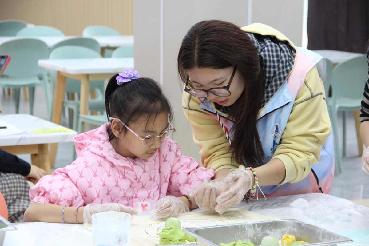 活动当天,社区居民、青少年有序走进校园,在温馨愉悦的氛围中开启春假研学之旅。学校新食堂内,民俗体验与趣味互动同步开展:套圈游戏区里,孩子们凝神瞄准、踊跃参与,在欢声笑语中收获惊喜与快乐;手作青团体验区中,大家围坐协作,揉面团、包馅料、塑造型,亲手感受清明民俗魅力,在实践中传承中华优秀传统文化,尽享春日校园温情。