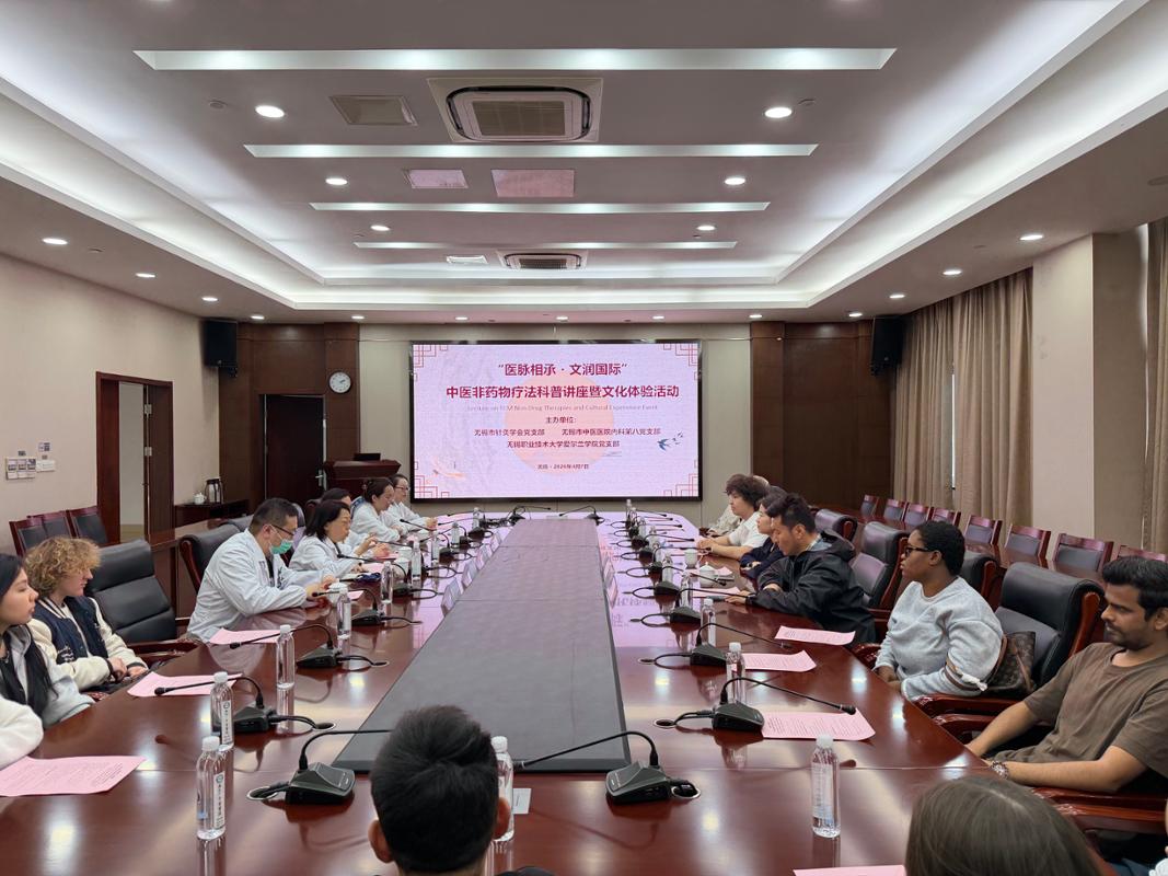 4月7日下午,国际教育学院、爱尔兰学院组织中外学生走进无锡市中医医院,开展了一场别开生面的沉浸式体验中医非遗文化活动。来自加纳、乌兹别克斯坦、哈萨克斯坦、蒙古、尼泊尔、巴基斯坦等“一带一路”共建国家的留学生与中国学生共同参与,旨在让外国留学生近距离感受中医药文化的独特魅力,增进对中华优秀传统文化的理解与认同。