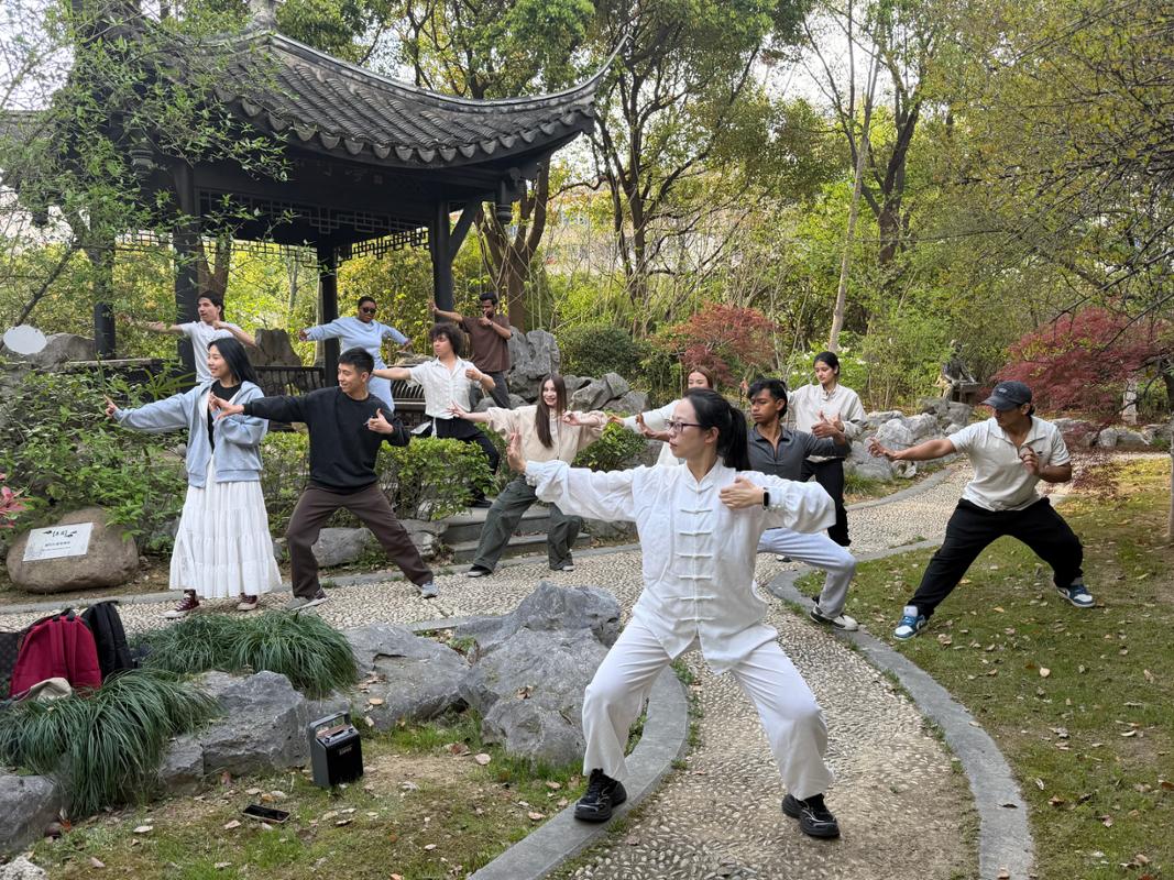 中外学生学习八段锦