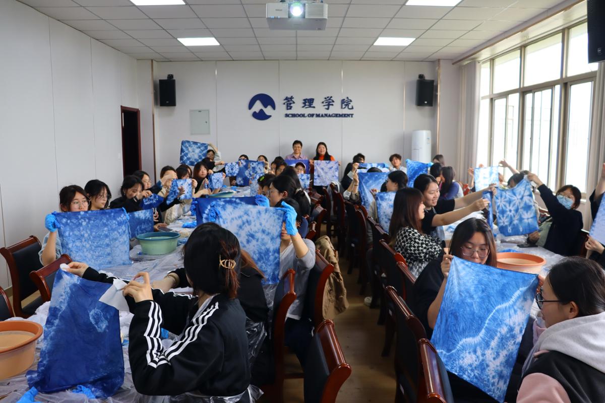 世界地球日来临之际,为让生态文明理念浸润青年心灵、让优秀传统文化在校园焕发生机,4月21日下午,管理学院在J1-404会议室举办环保扎染体验活动,推动美育、思政与环保教育深度融合。校党委副书记杨雪琴参加活动,与师生一同感受扎染之美、践行环保之责。