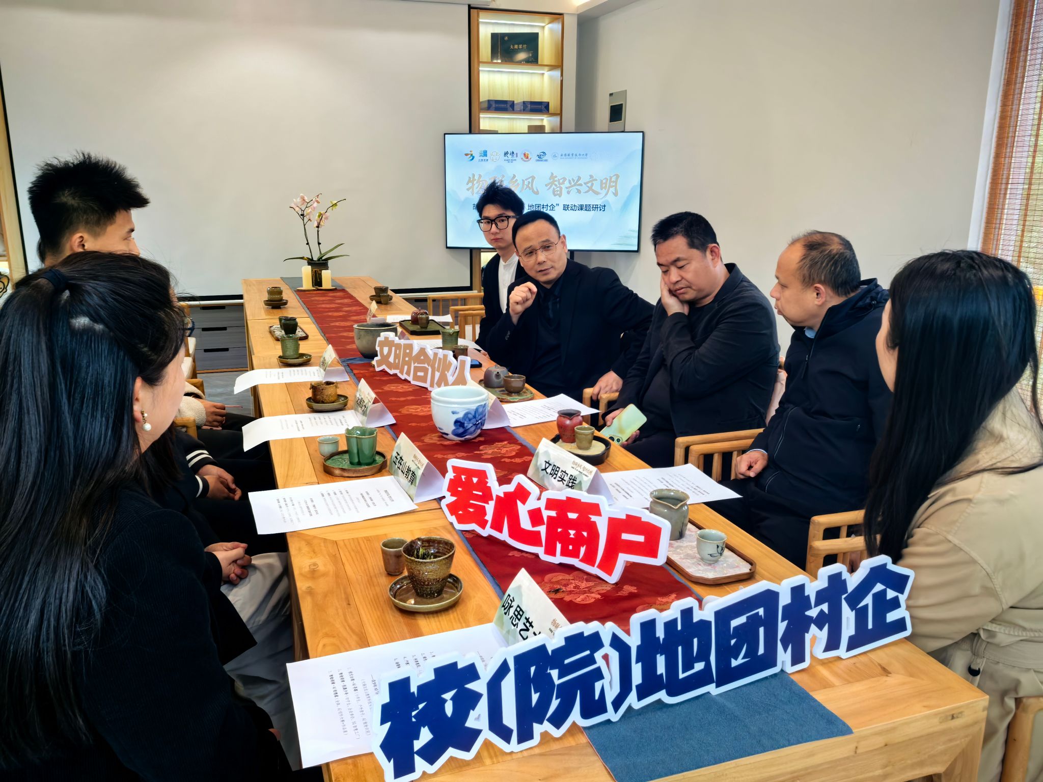 此次活动,机械学院作为文明实践合伙人,与各方共同启动“物联乡风,智兴文明”课题合作,并围绕该课题开展座谈,从科技赋能茶产业升级、智慧化建设助力乡风文明、校社协同开展实践活动等多个角度深入探讨,充分体现校院地团村企深度融合。活动既传承了本土非遗与农耕文化,又深化了校社政企联动,为乡风文明建设注入青春活力,助力青少年成长,也为乡村振兴注入持久动力,推动文明实践走深走实。