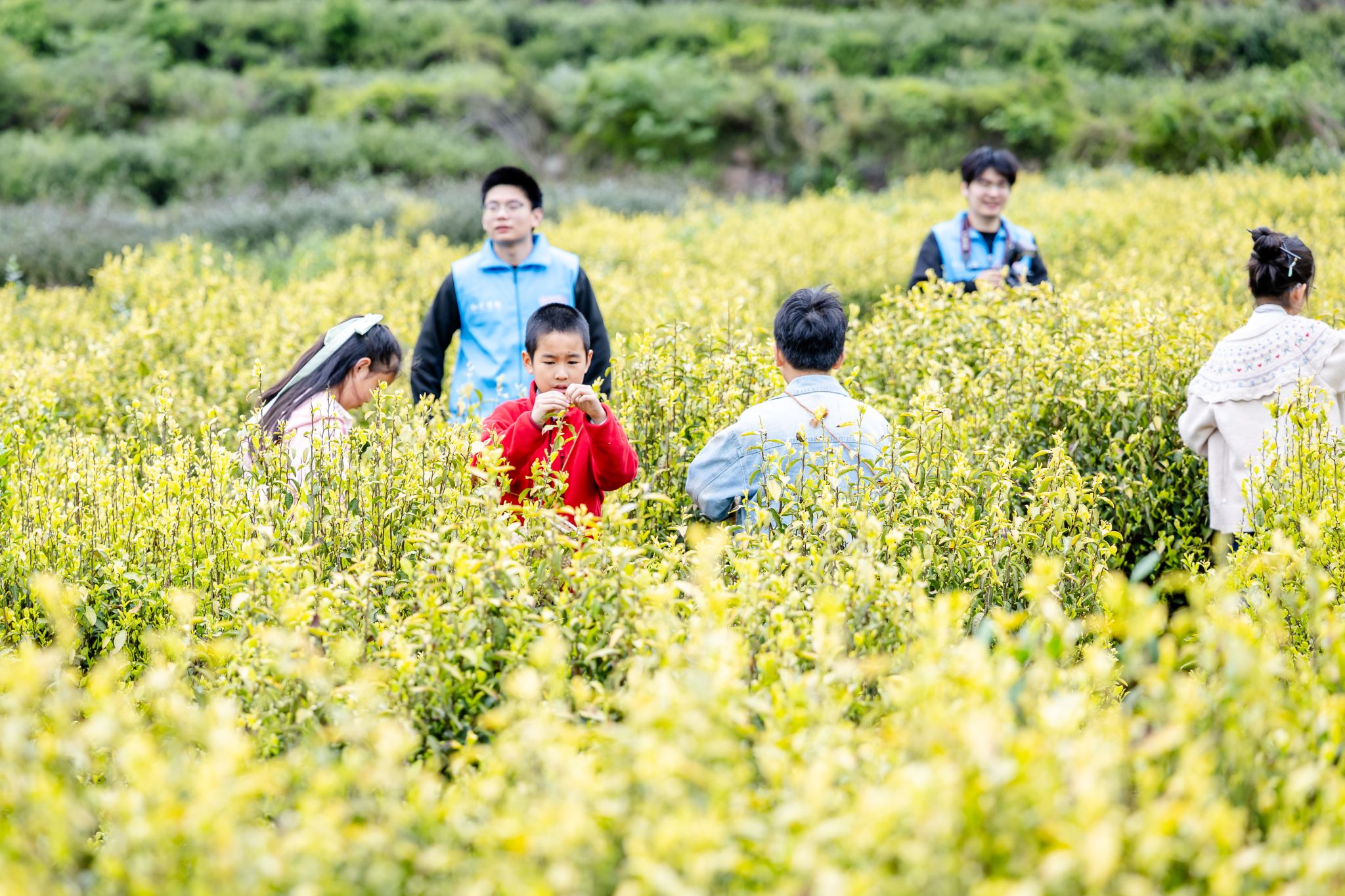 在中湾生态茶园,志愿者配合茶农,协助讲解采茶技巧、示范“一芽一叶”采摘方法,守护孩子们安全体验采茶乐趣,引导其体会劳动价值、感悟农耕文化。随后,志愿者带领青少年前往茶厂,有序组织参观制茶工序,配合制茶师傅讲解非遗技艺,助力青少年了解传统茶文化,增强本土非遗认同感,用行动传递温暖与责任。